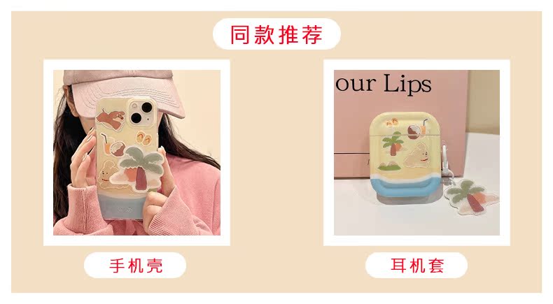 雙層工藝奶黃沙灘椰樹小狗適用iphone13promax手機殼蘋果14新款12pro創意小眾11女14pro全包防摔軟硅膠手機套