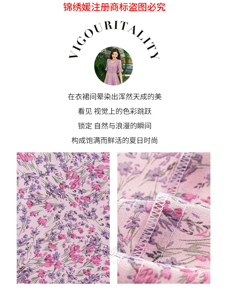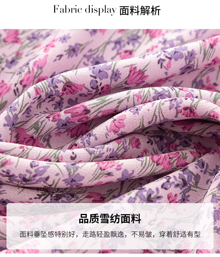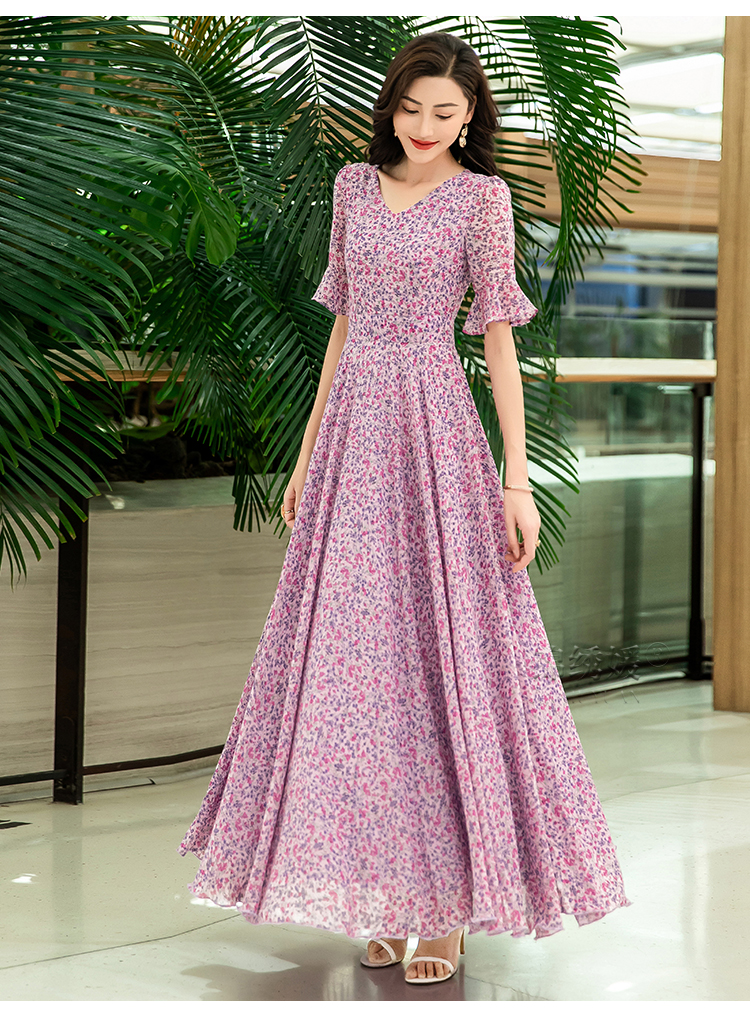 紫色碎花連衣裙女夏長款2023新款高端氣質收腰碎花雪紡長裙到腳踝