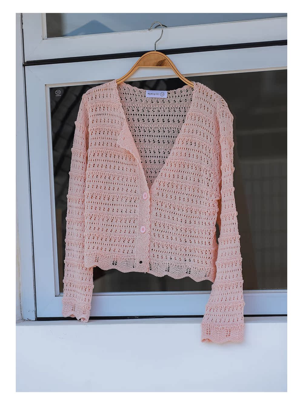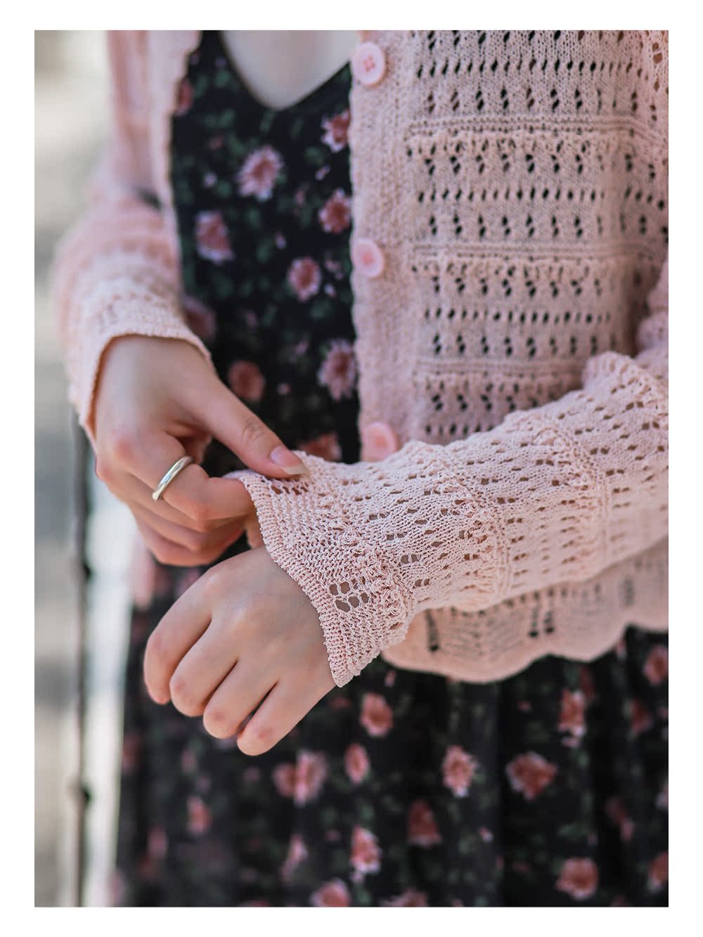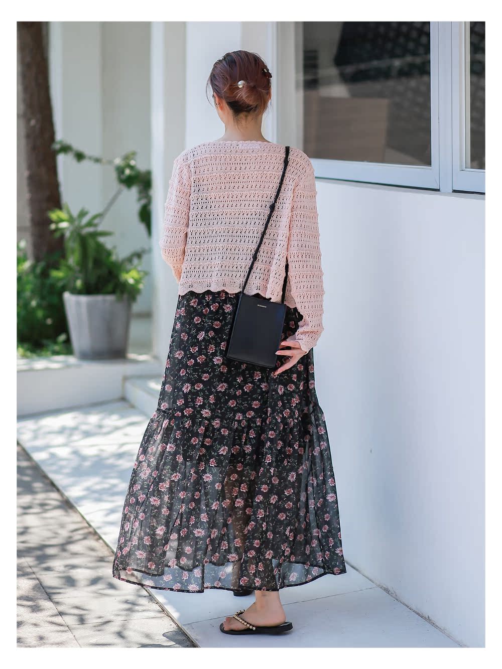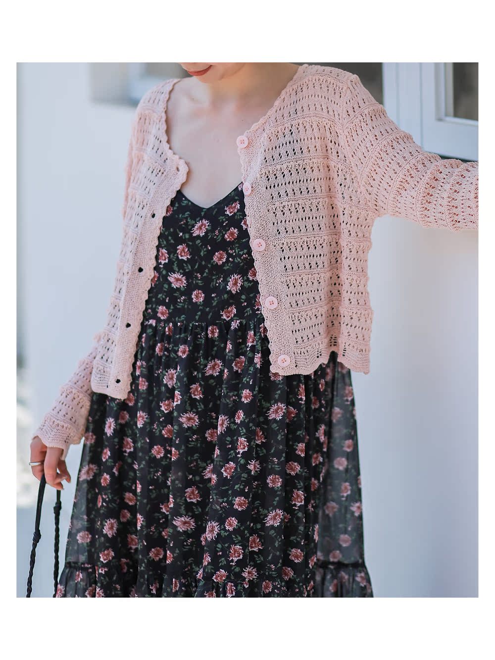 菲爾丹 復古風吊帶花色連衣裙 淺粉鉤花長袖防曬防走光空調衫6801