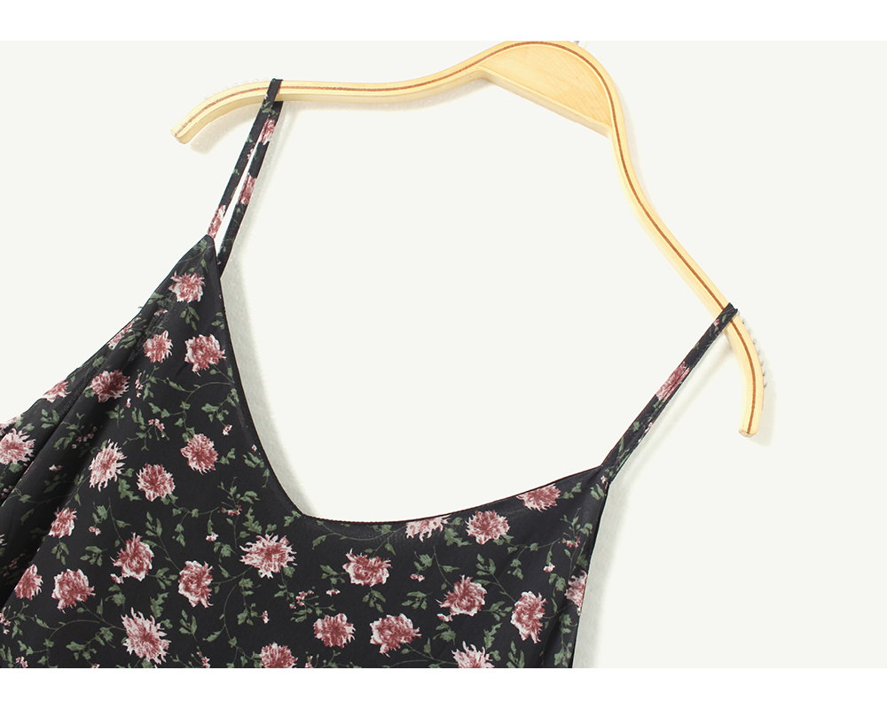 韓國絲面料孔雀花帶吊帶拼接連衣裙