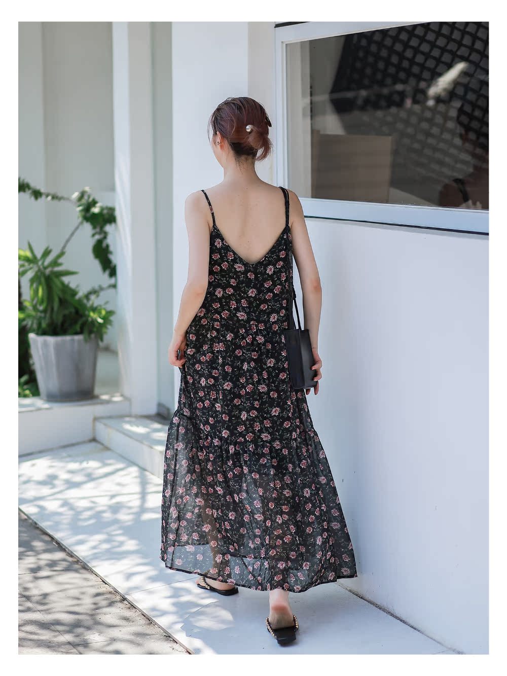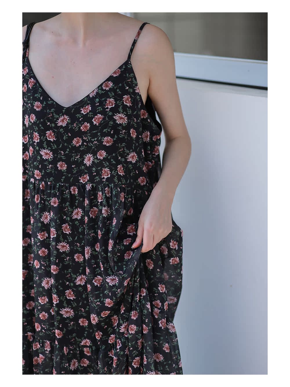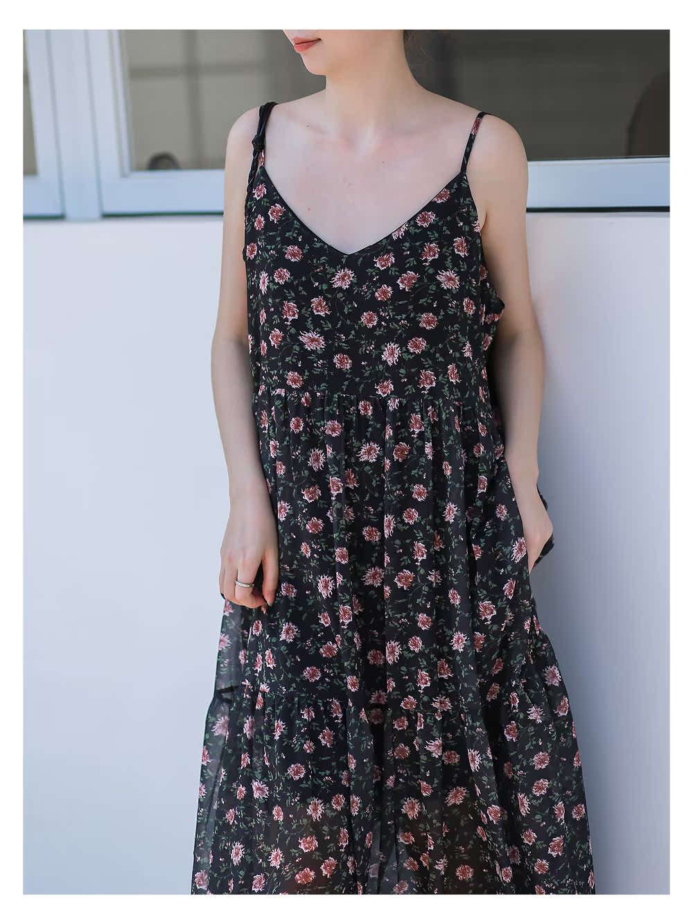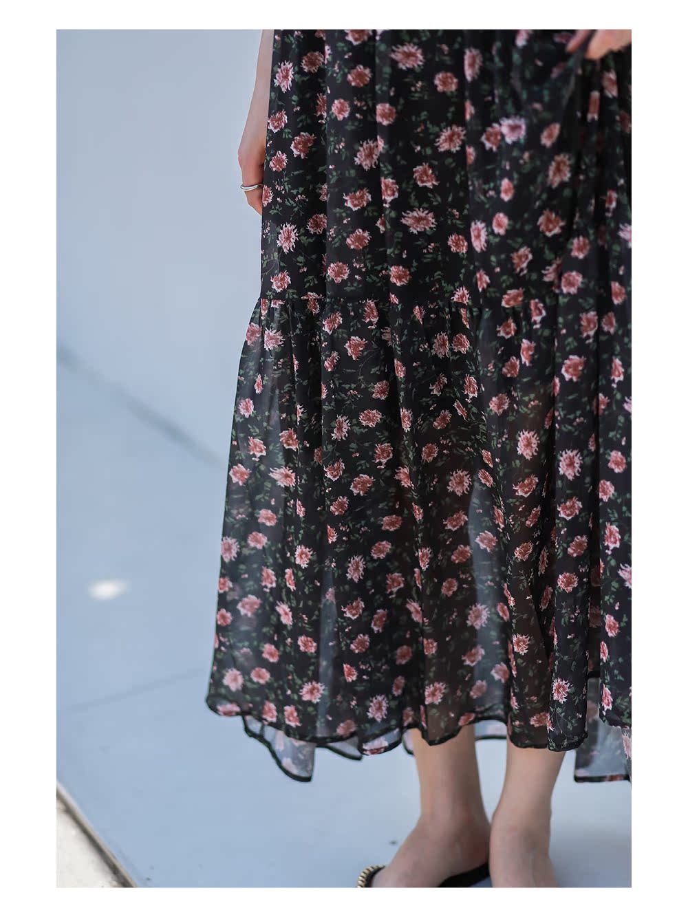 溫柔風吊帶碎花雪紡連衣裙2023夏季新款寬松顯瘦減齡優雅百搭長裙