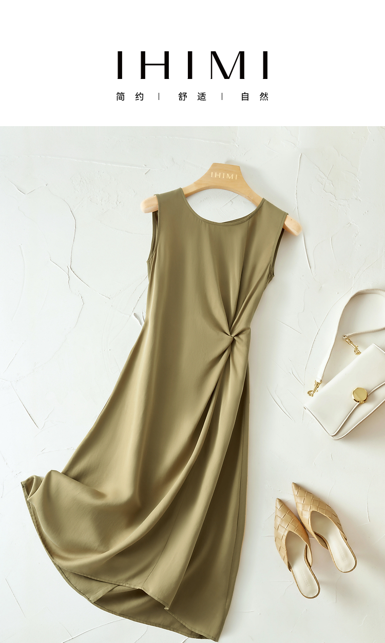 IHIMI天絲高級設計感裙子2023夏季新款女簡約氣質優雅吊帶連衣裙