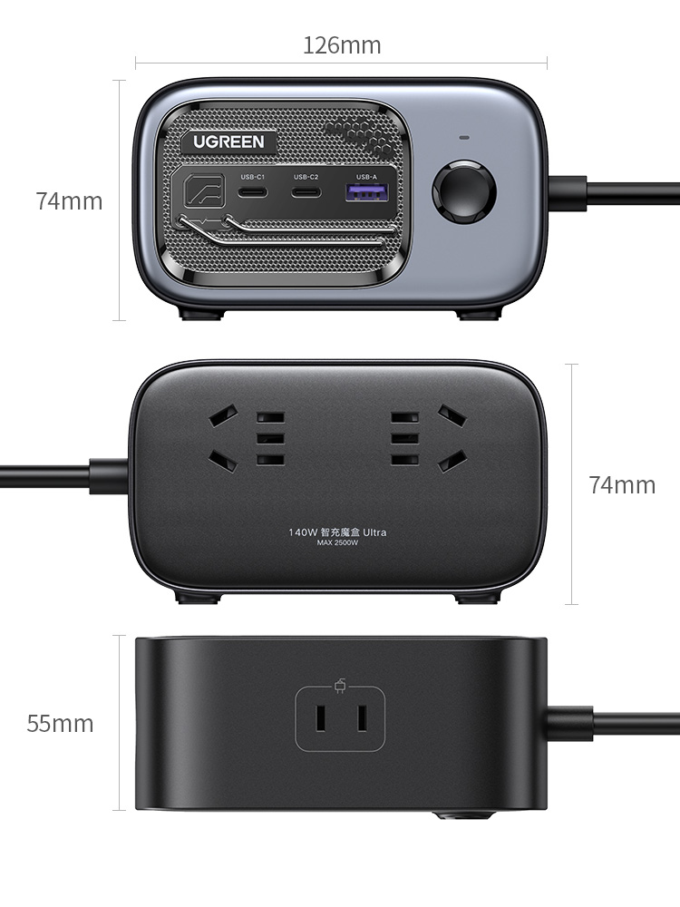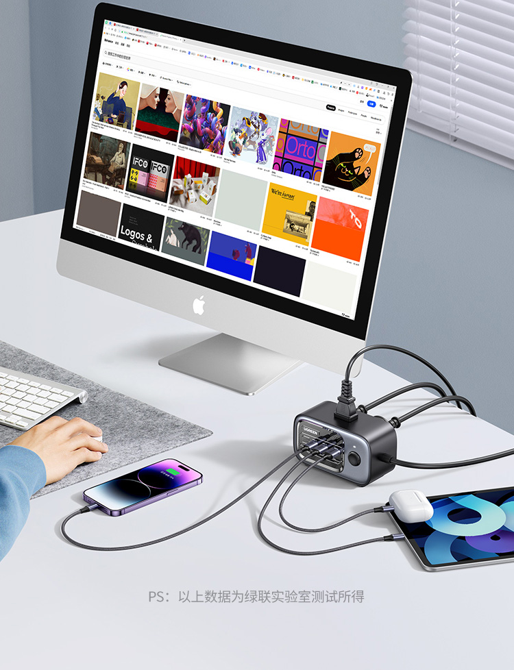 綠聯140W智充魔盒氮化鎵充電器桌面usb排插多功能插座快充接線板