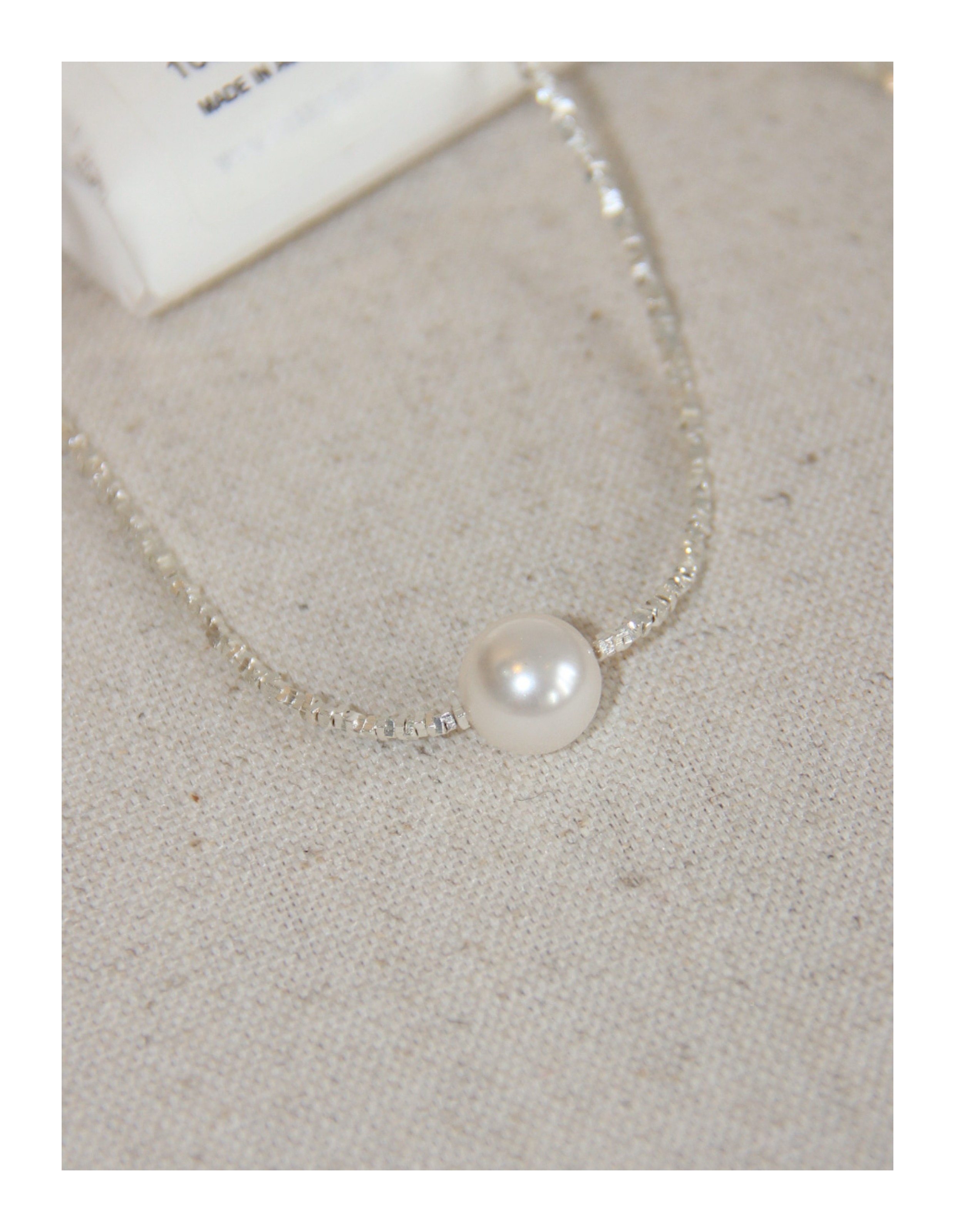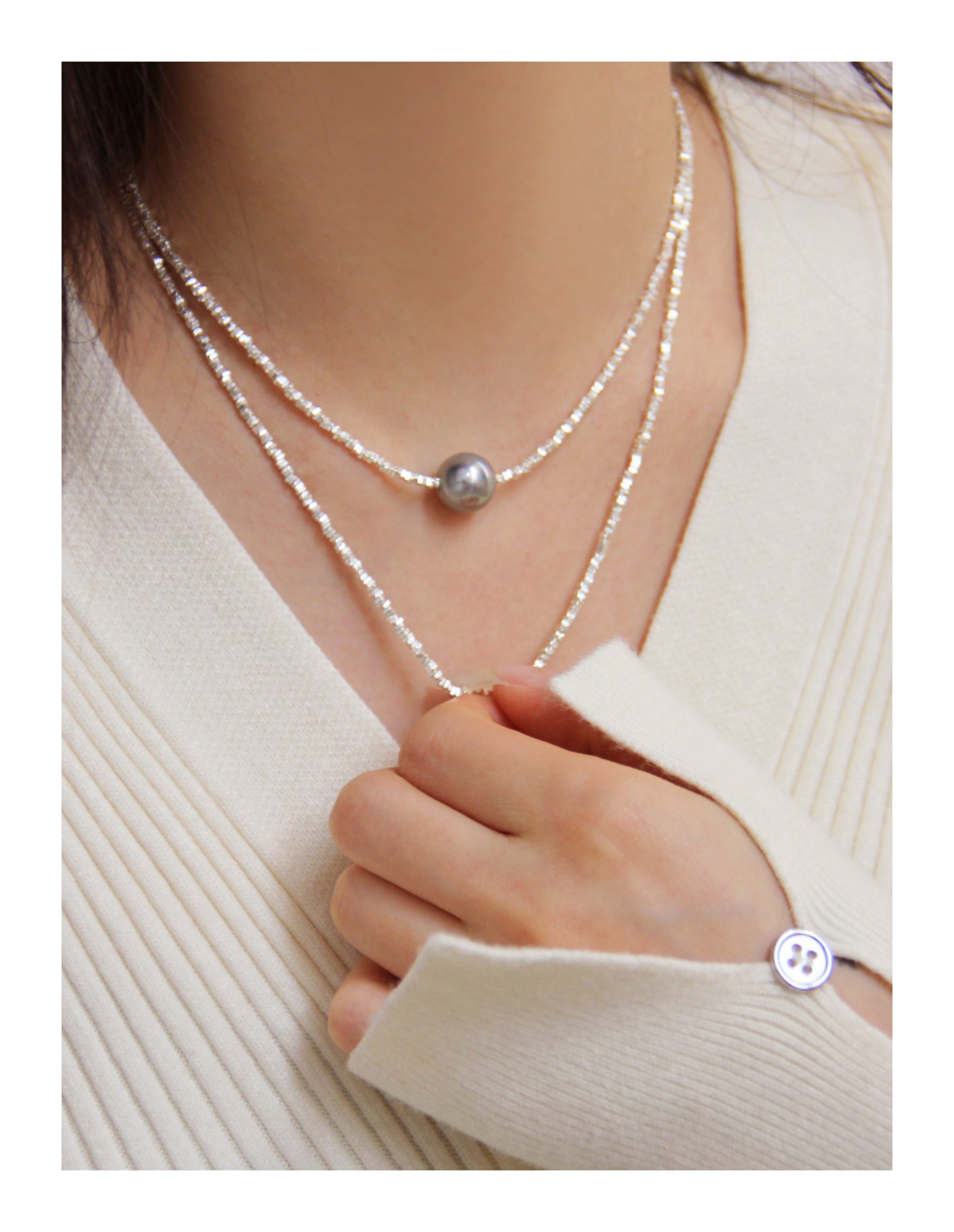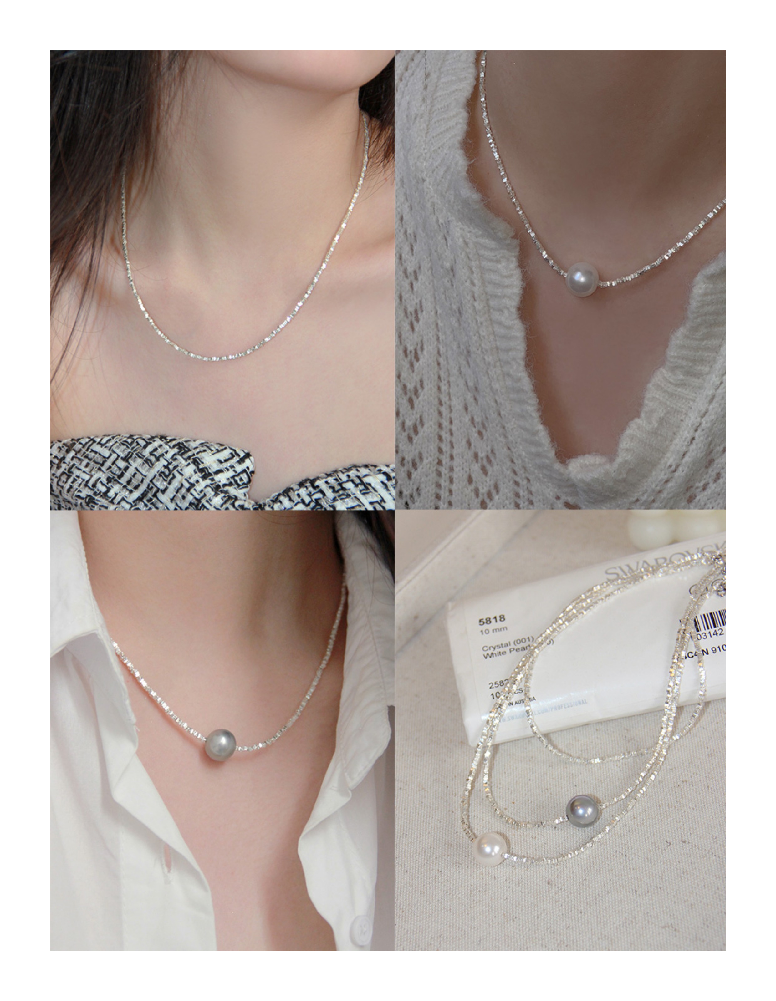 碎銀子S925純銀閃亮纖細串珠施家澳白珍珠小眾設計高級鎖骨鏈項鏈