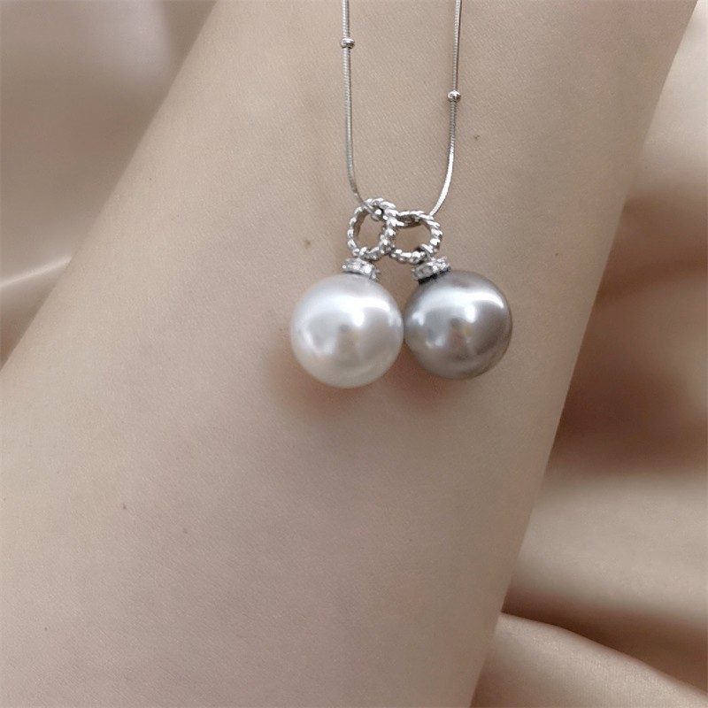 RUKL萬能扣925銀色18K白金色澳白珍珠真多麻灰吊墜可拆卸項鏈裸墜