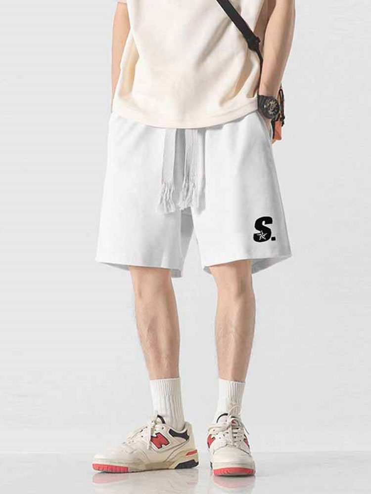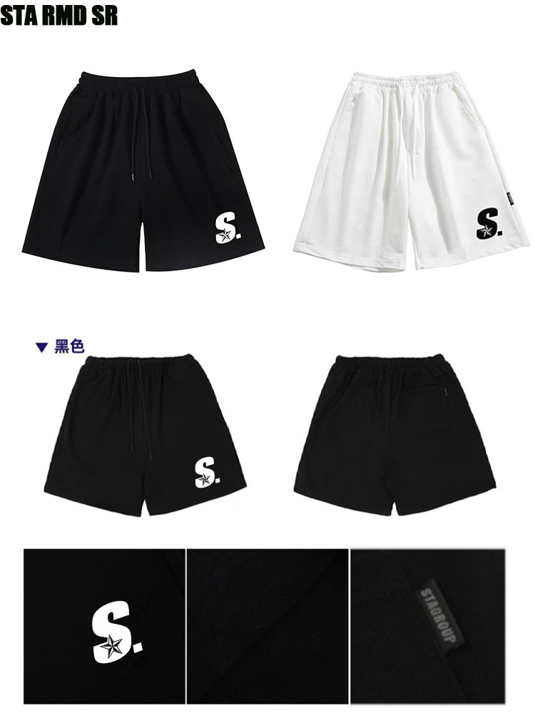 STA系列國潮S星標情侶五分褲多色街頭微彈寬松運動休閑抽繩短褲男
