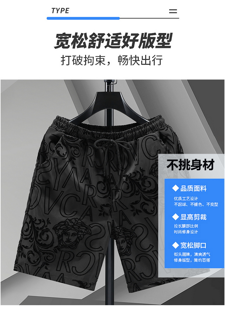 潮牌植絨短褲男夏季薄款五分褲外穿大褲衩休閑速干外穿中褲沙灘褲