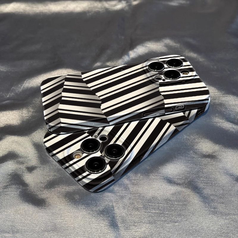 日韓ins不規則黑白條紋適用12/11Pro/Max菲林X/XS/XR/SE2蘋果13手機殼iPhone14promax硬殼女潮創意防摔保護套