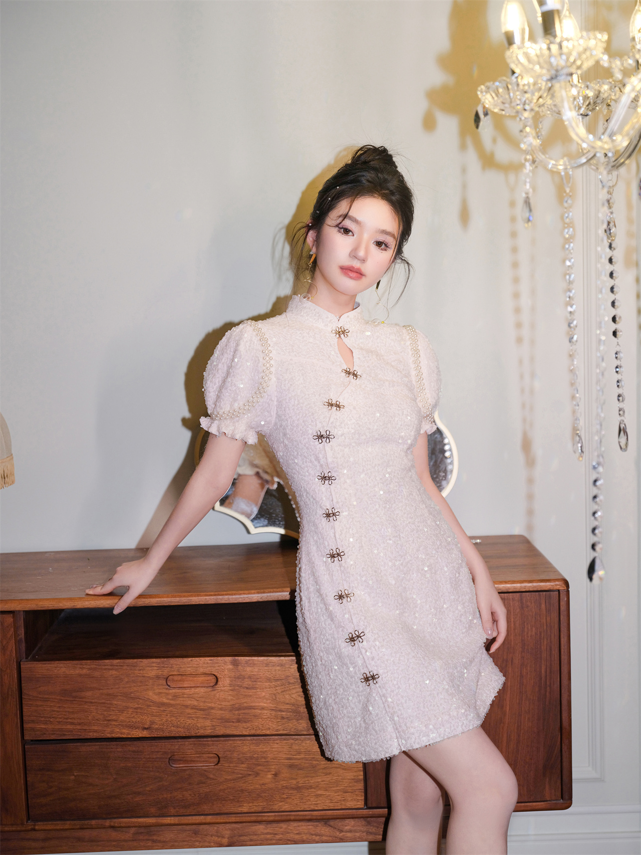木蘭 NAMAS MIYO23新款人魚夢幻粼粼BLING改良旗袍氣質修身連衣裙