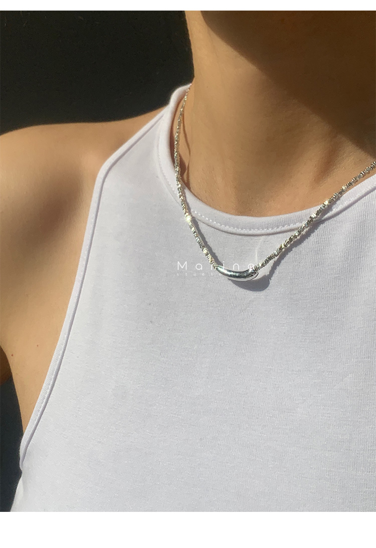 通體s925純銀小茄子彎管碎銀子項鏈 甜苦拼接夏季新款小眾高級感