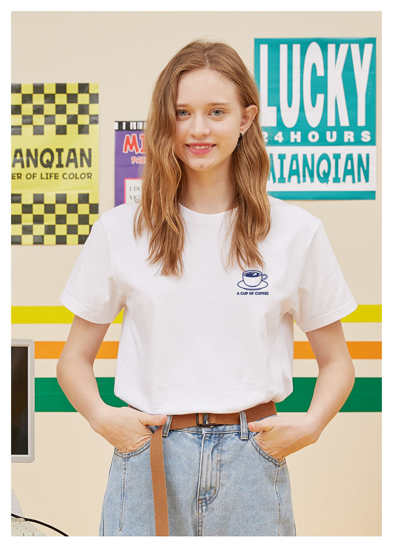 棉牽簡約百搭純白色t恤正肩短袖女顯瘦夏季圓領上衣100%純棉半袖
