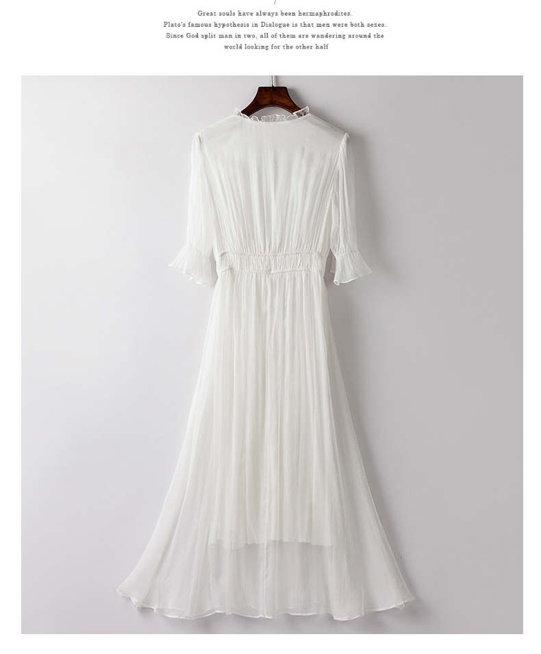 喇叭袖真絲連衣裙女2023夏新款大擺長裙飄逸木耳邊桑蠶絲裙子仙女