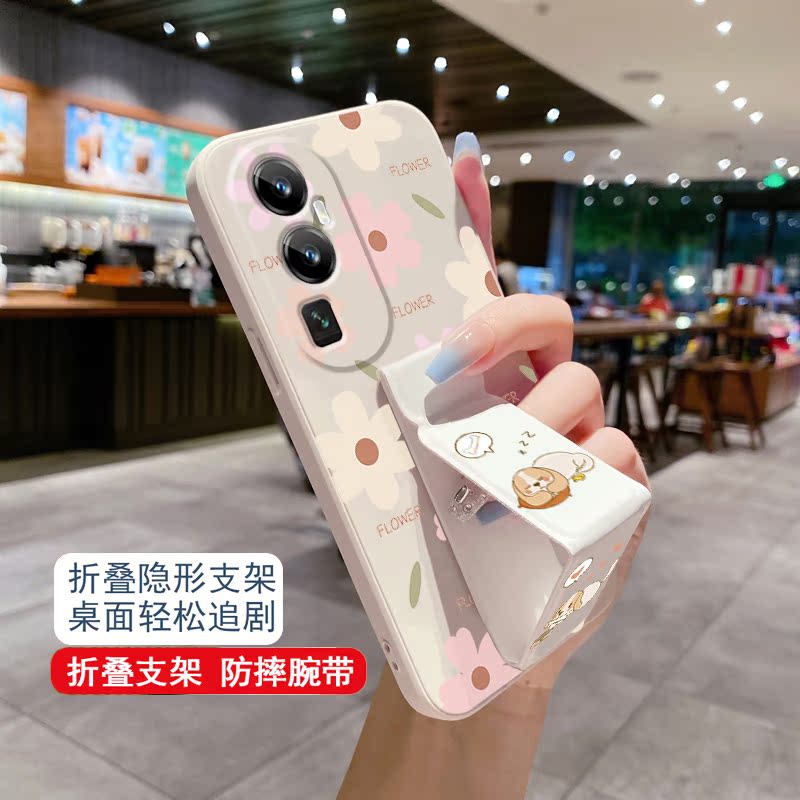 OPPOReno10手機殼小花狗Reno10Pro+桌面橫豎支撐架Reno9Pro磁吸腕帶Reno8/7se/6/全包防摔Reno5/4/3/2z/z軟殼