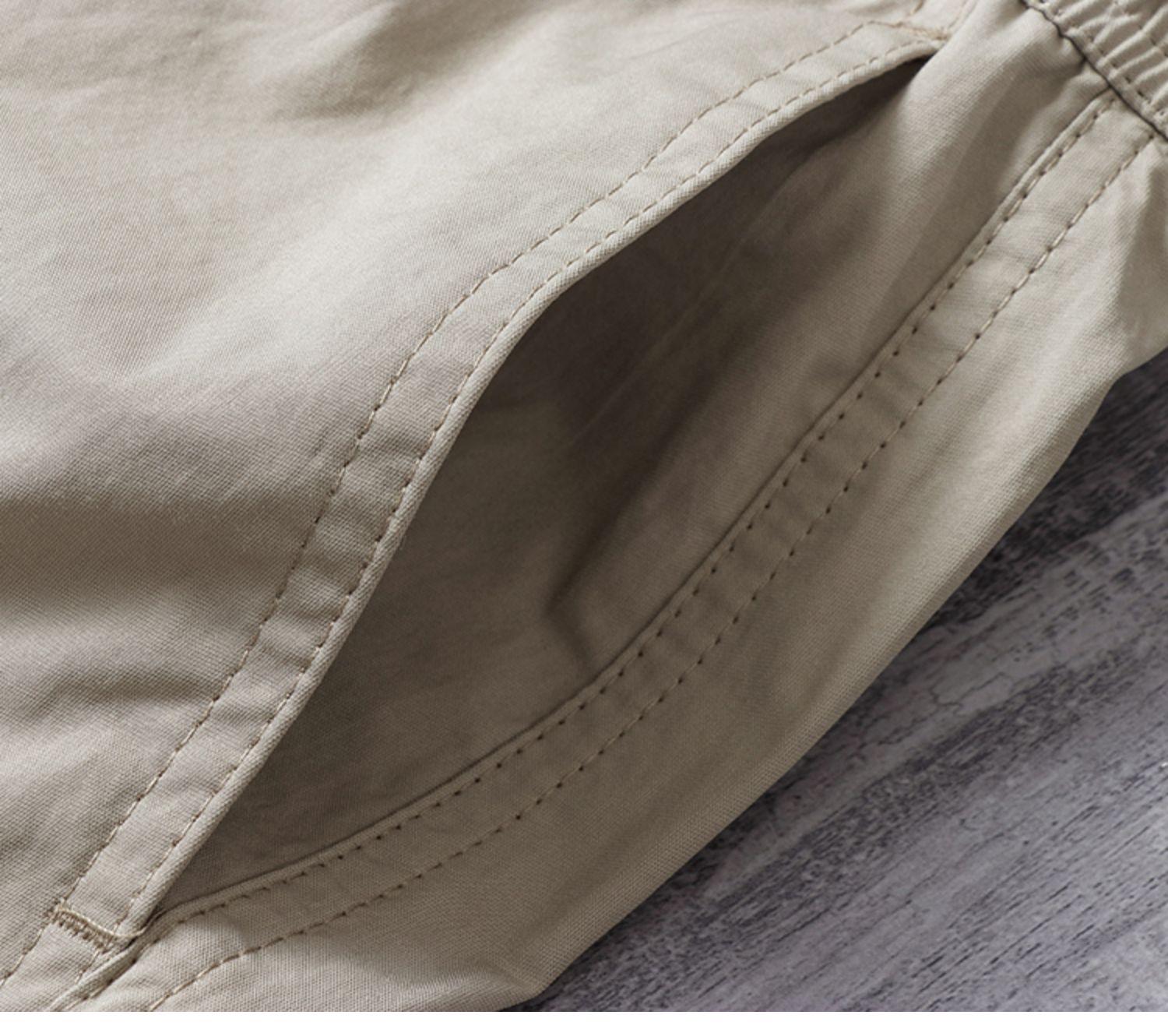 美式休閑春夏新款直筒戶外工裝松緊腰水洗青年寬松卡其休閑褲男