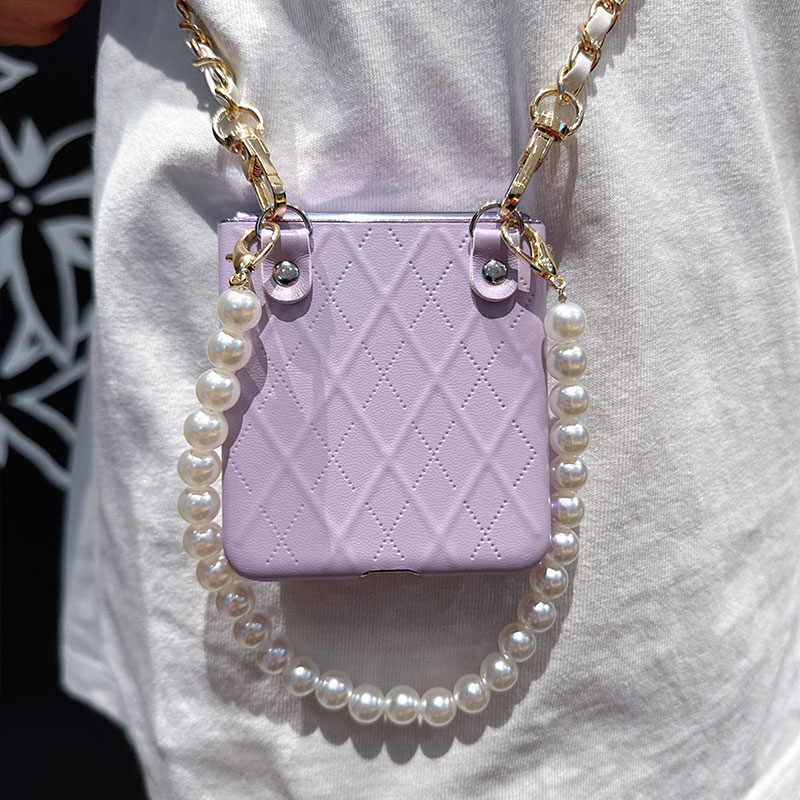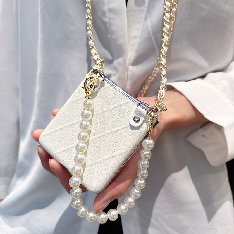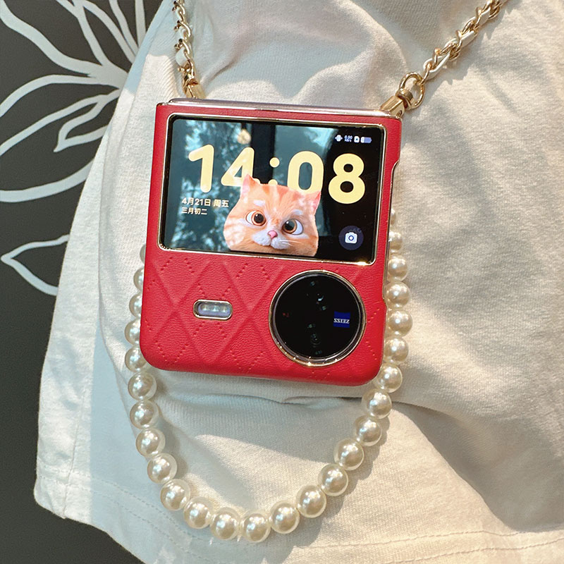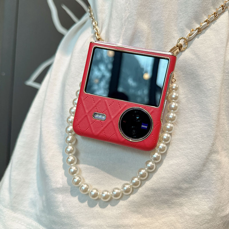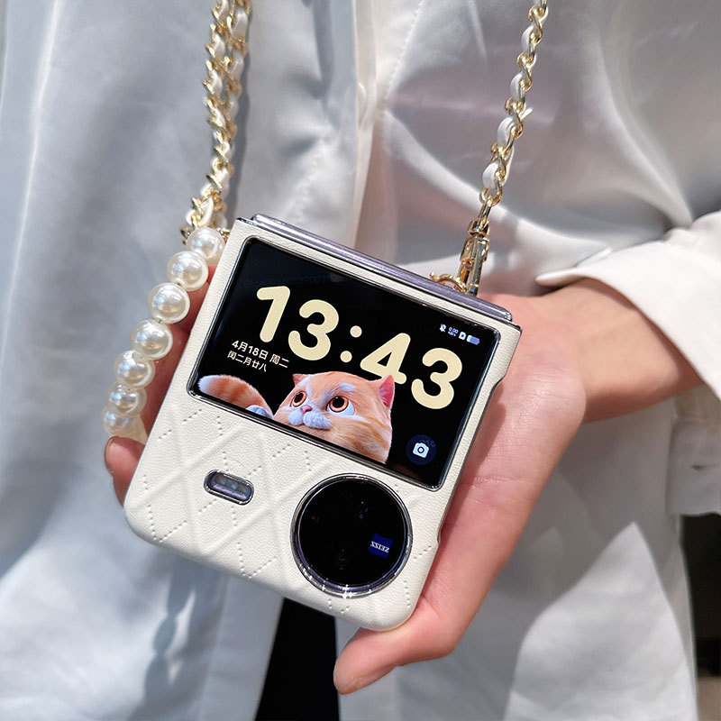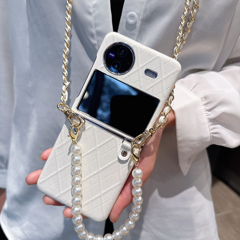 【現貨秒發】vivo xflip手機殼新款菱形帶中軸純色適用于vivo折疊屏保護殼女生珍珠手鏈可斜跨防摔全包保護套