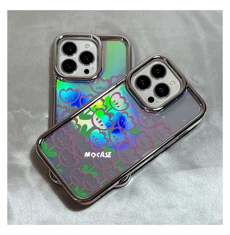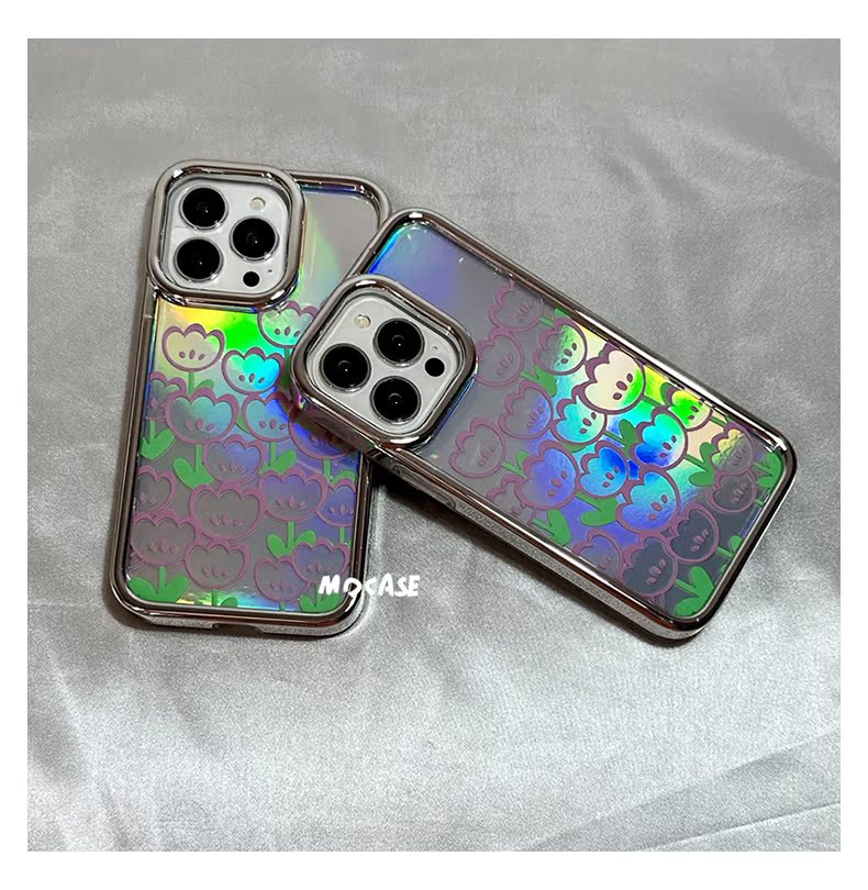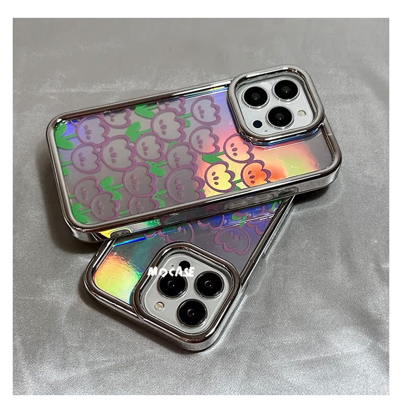 郁金香花朵適用蘋果14手機殼高級感小眾iPhone14Promax新款13二合一保護套12鐳射漸變11全包防摔女硬網紅電鍍