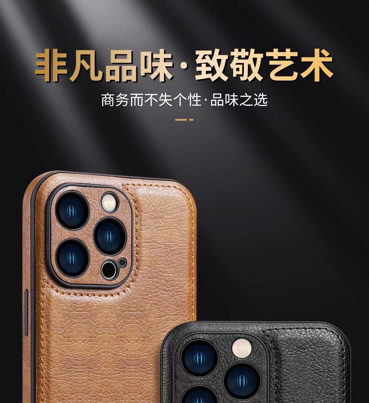 新款適用蘋果14PRO手機殼皮革iPhone13Promax全包12保護套15皮質荔枝紋11防摔男士女款高檔真防手汗素皮商務
