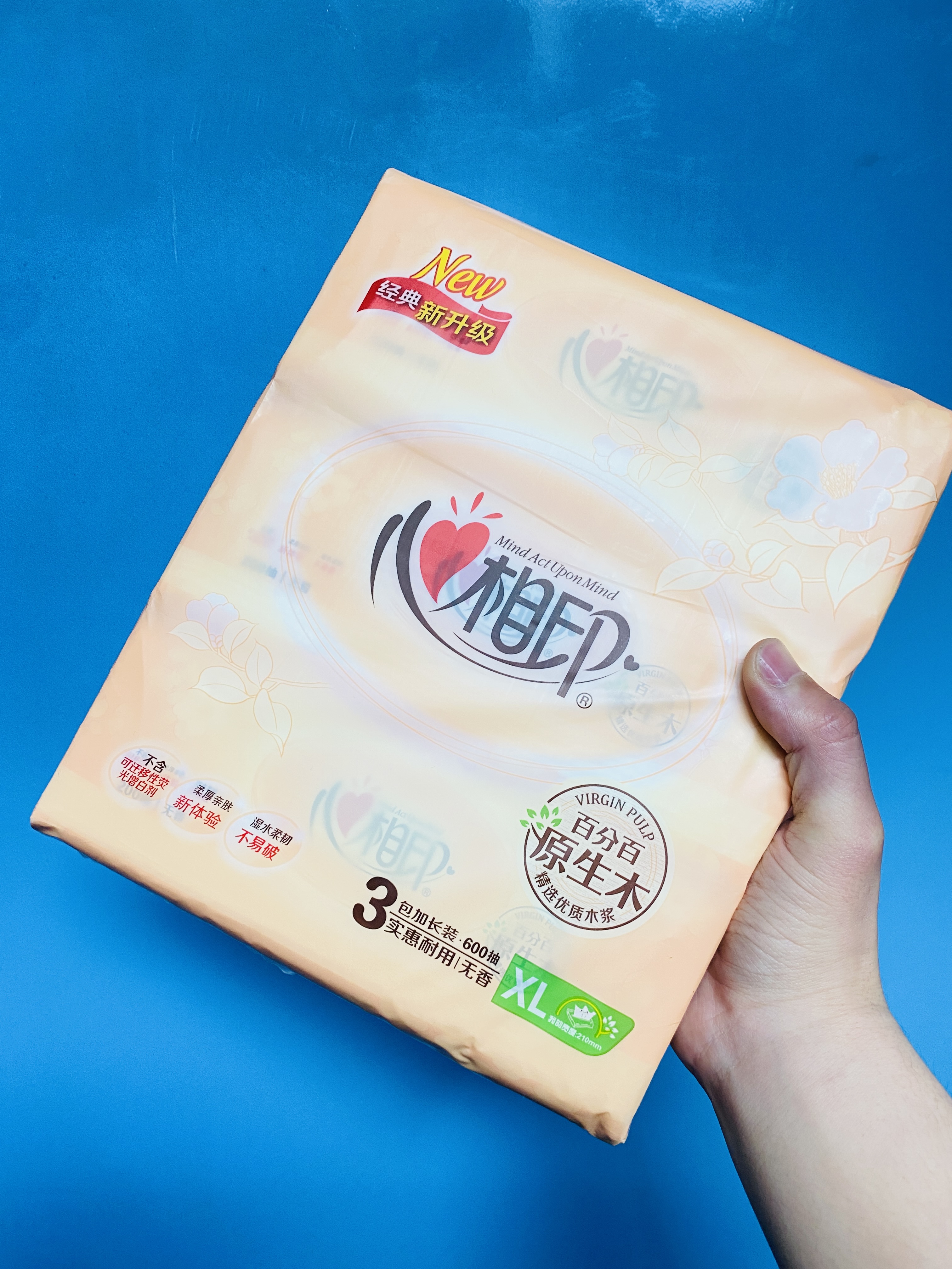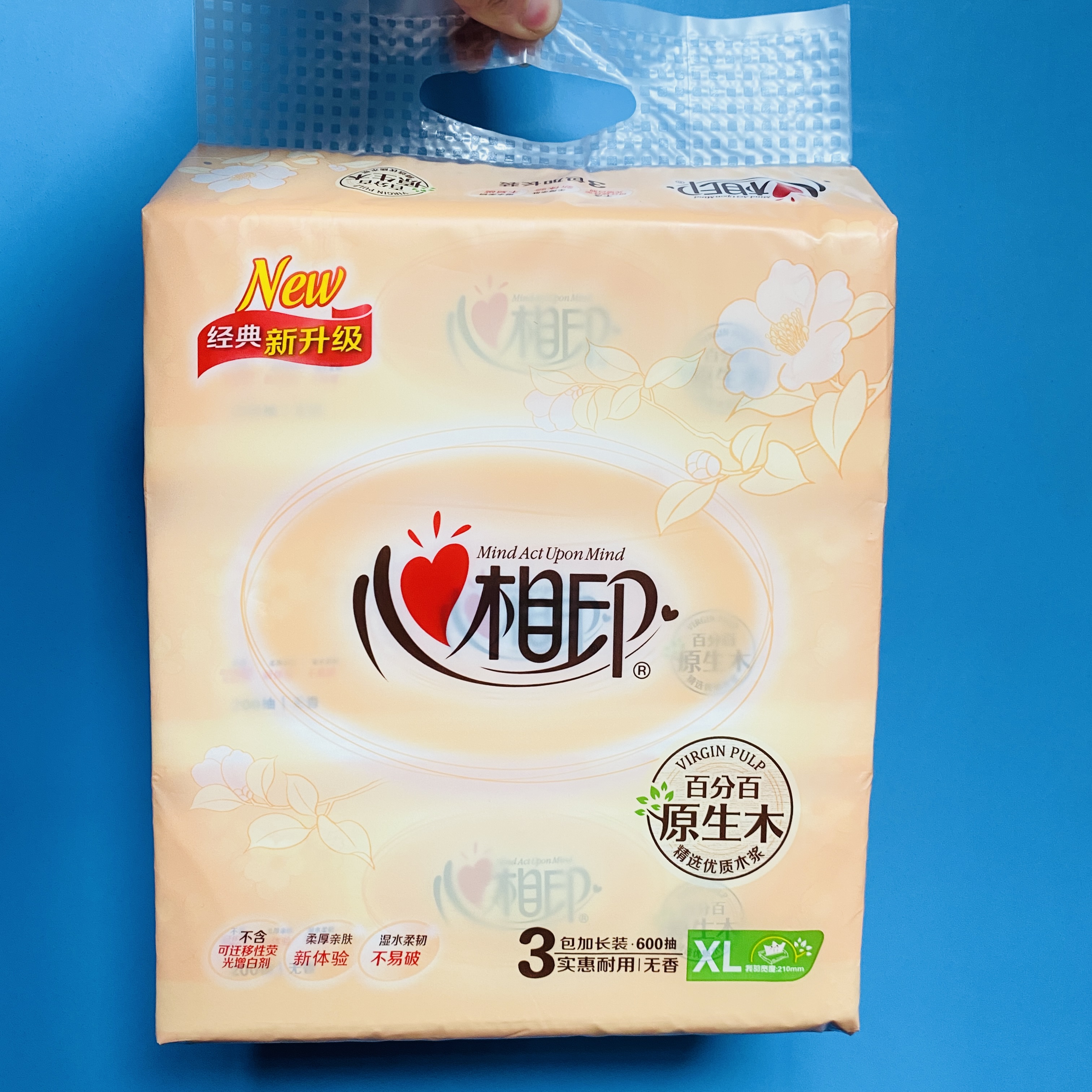 心相印抽紙600抽/提加大碼XL家庭裝實惠耐用大包家用餐巾紙DT200