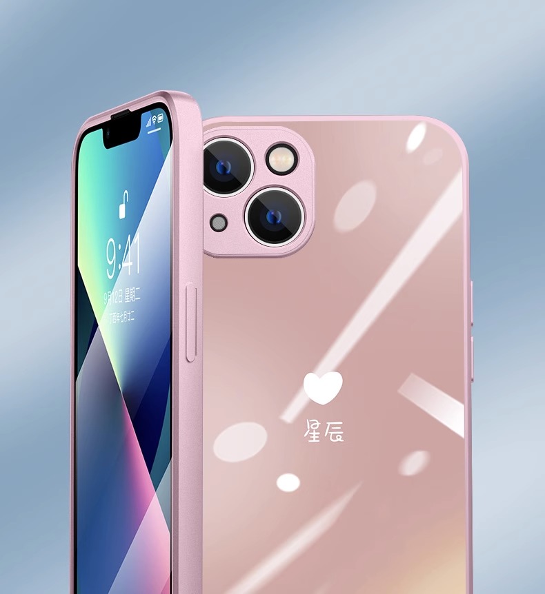愛心喜樂適用蘋果14手機殼新款iphone13promax簡約玻璃12mini保護套11情侶xsmax高級xr女se3硅膠78plus男6sp