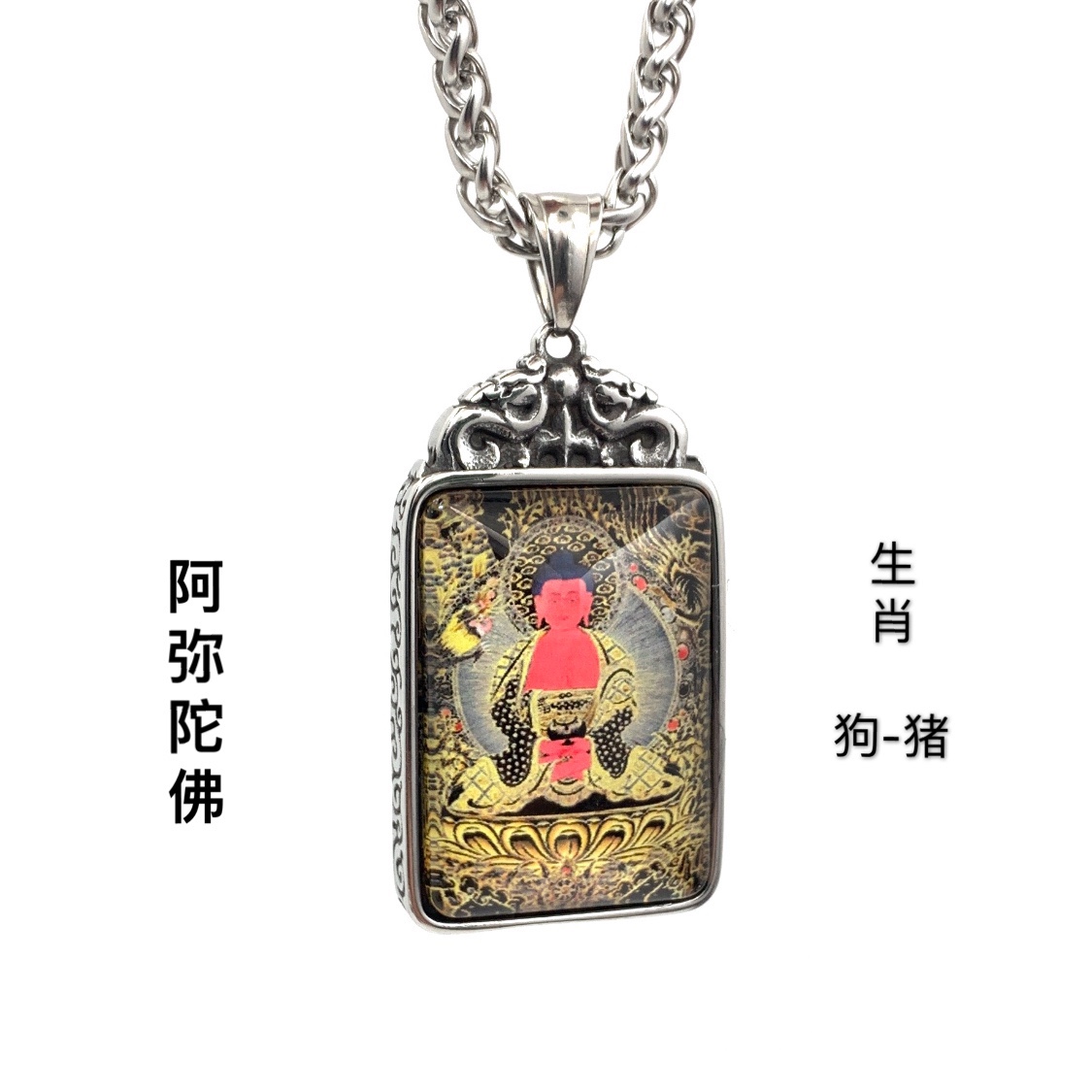新款十二生肖守護神國風雙面彩繪唐卡吊墜鈦鋼項鏈男女潮時尚掛飾