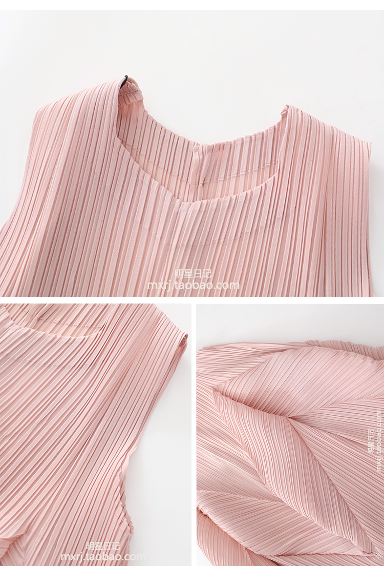 明星日記花苞褶皺粉色無袖連衣裙女2023夏季新款寬松舒適中長裙