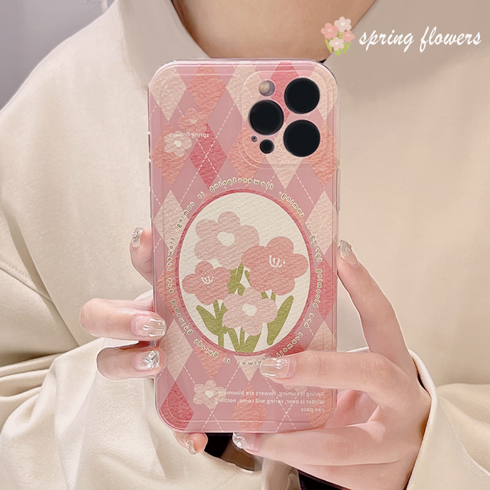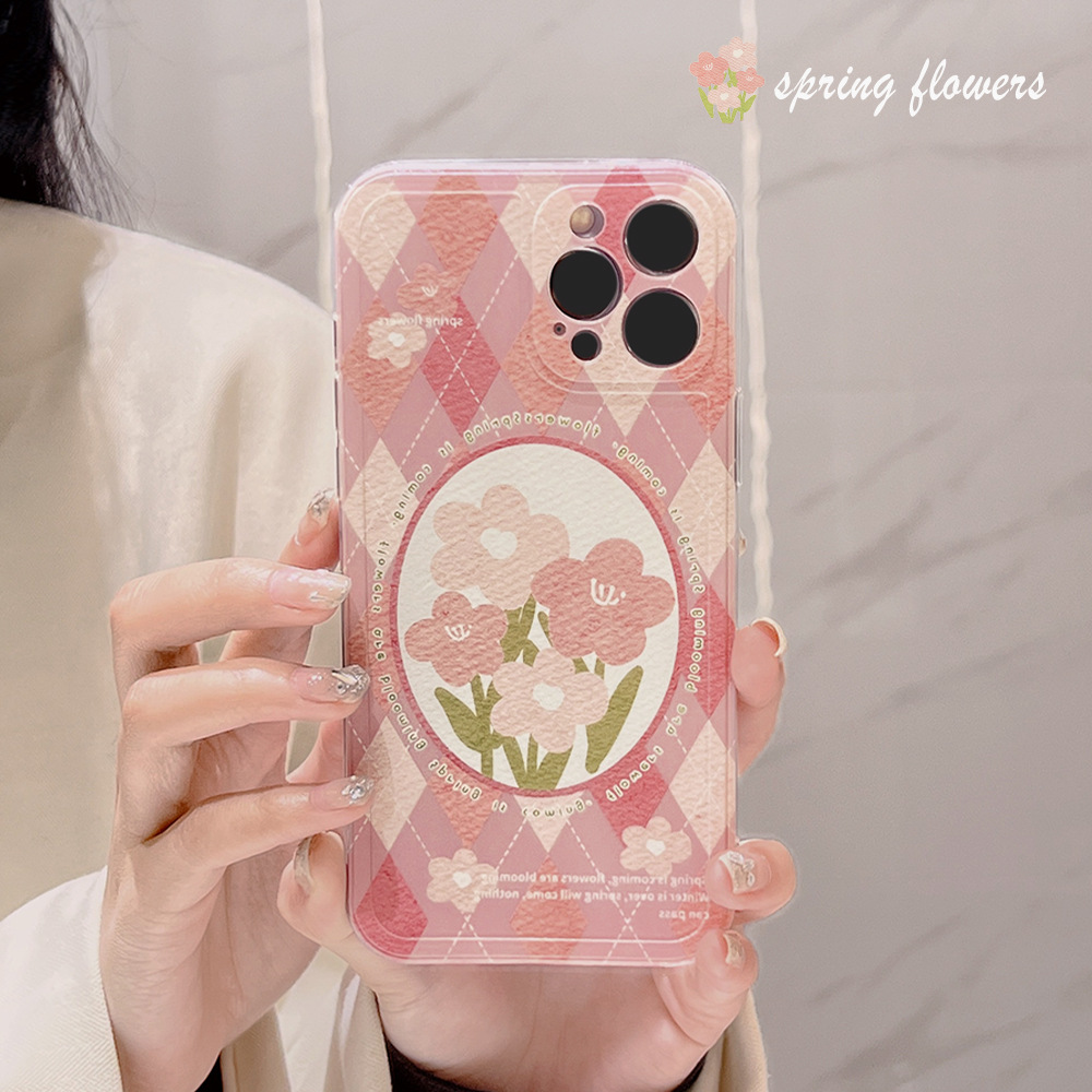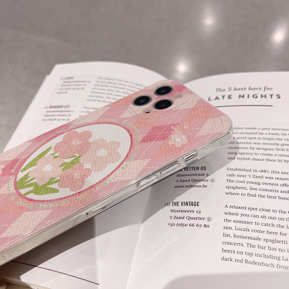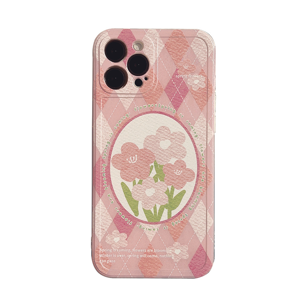 清新花朵適用iphone13promax蘋果12手機殼11少女粉xr棋盤格8p軟14