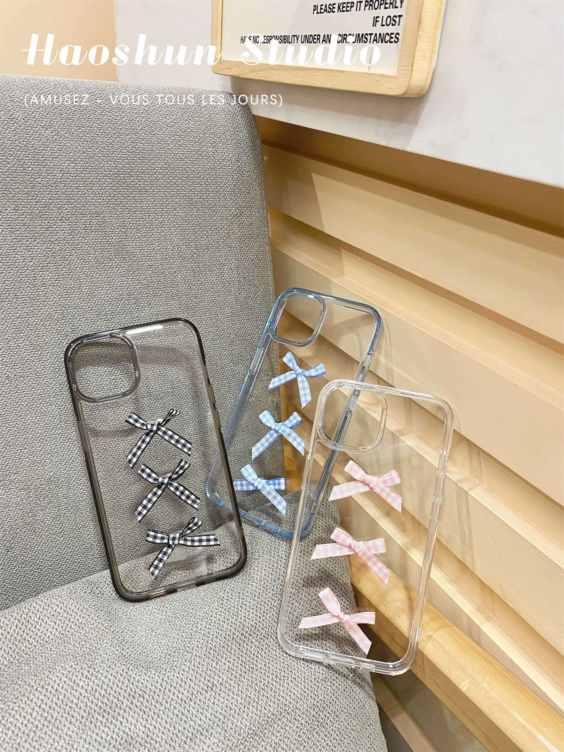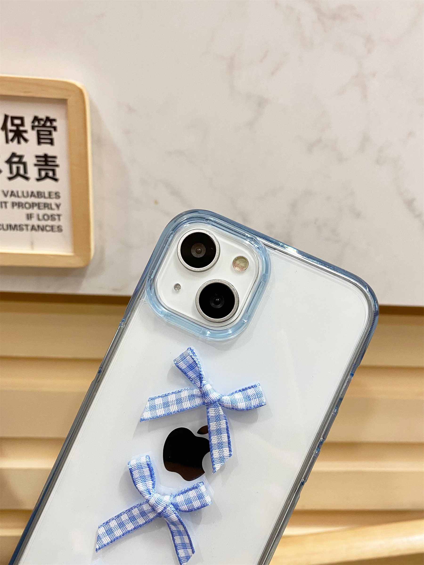 藍粉黑色蝴蝶結適用于iPhone14promax高透玻璃手機殼蘋果14pro透明簡約14plus/蘋果14防摔創意保護套全包硬女