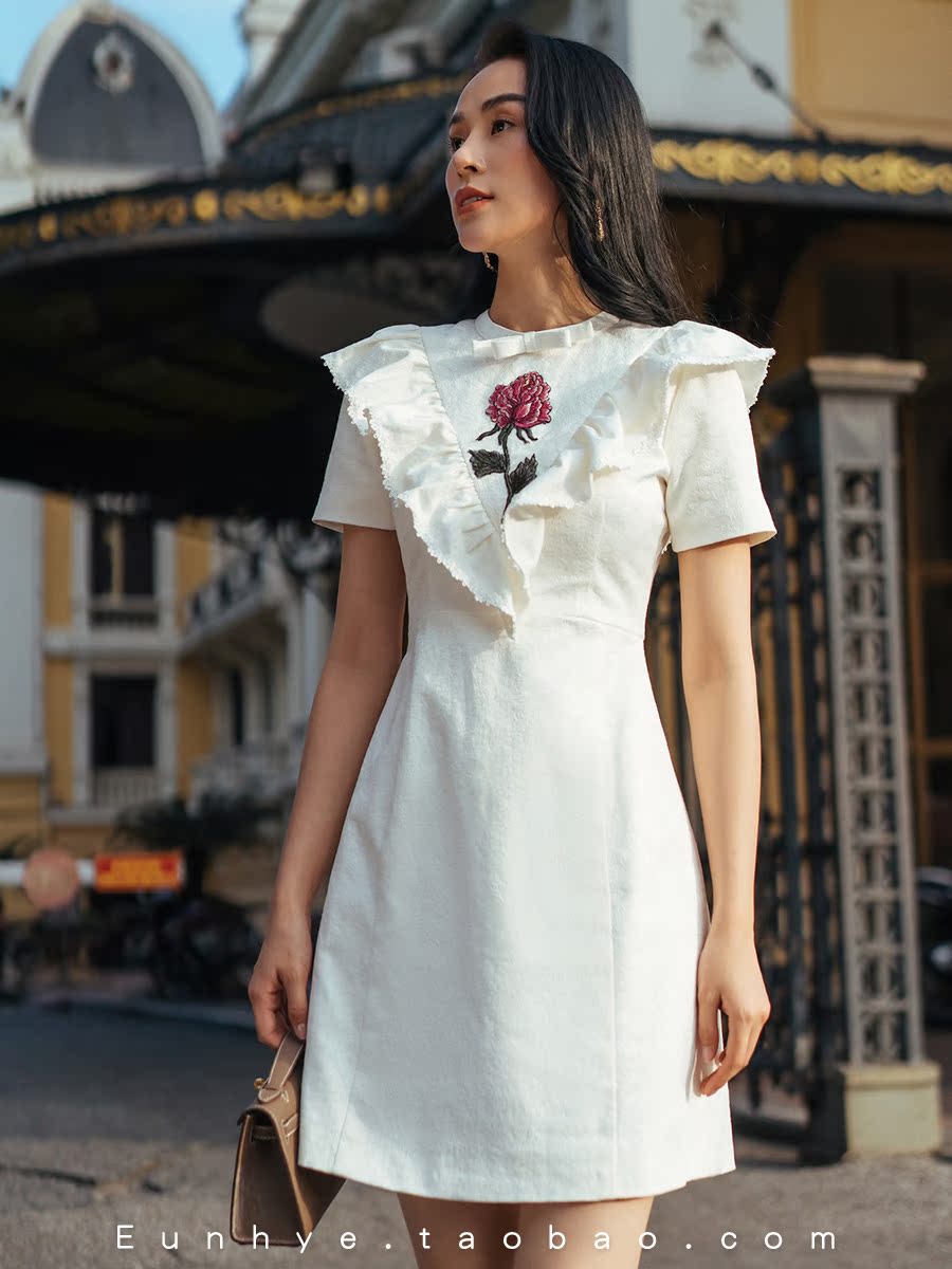越南品牌LES PETITES 2023年夏季新款時尚小香風玫瑰連衣裙
