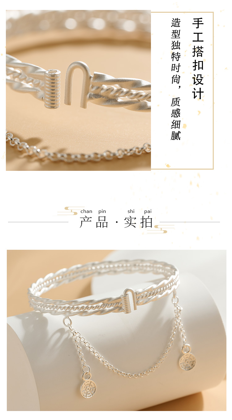 順欽銀樓S999純銀手鐲女年輕款青絲流蘇足銀鐲子古風國潮小眾設計