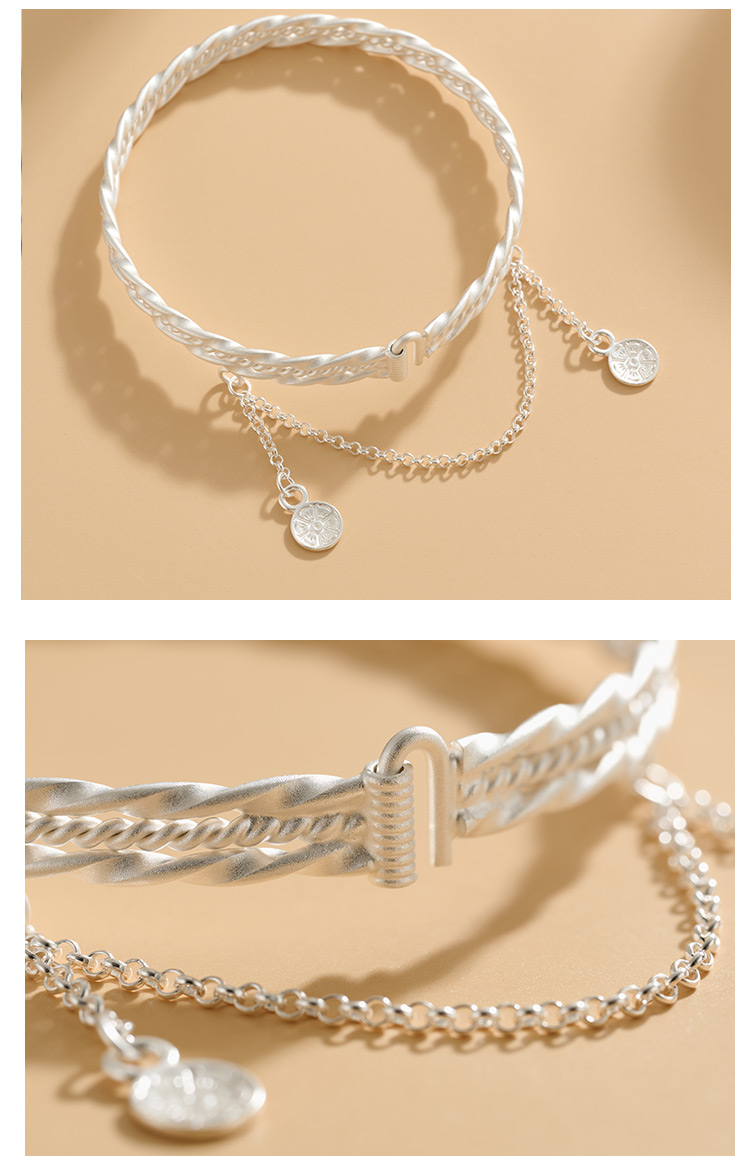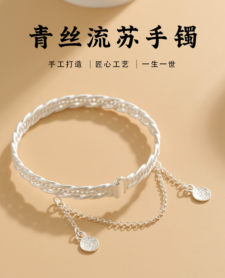 順慶銀樓S999純銀手鐲女青絲流蘇足銀鐲子復古文藝情人節送女友
