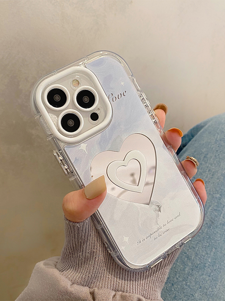 鏡面少女心粉色英文愛心適用蘋果15pro手機殼iphone14鏡子手機套13promax網紅可愛12女款max小眾高級感11補妝