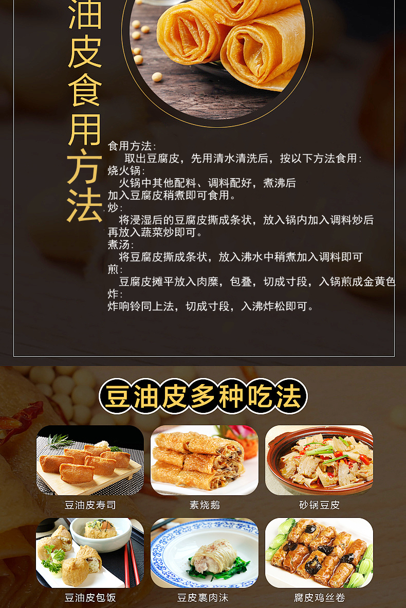 頭層豆腐皮油豆皮五香卷皮春卷皮卷章炸響鈴干貨千張手工豆付腐竹