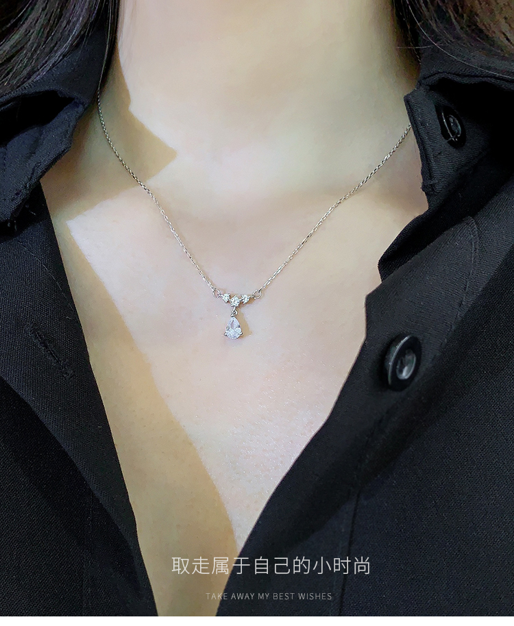 人魚淚925純銀項鏈女款輕奢小眾水滴鋯石鎖骨鏈高級感細頸鏈2023