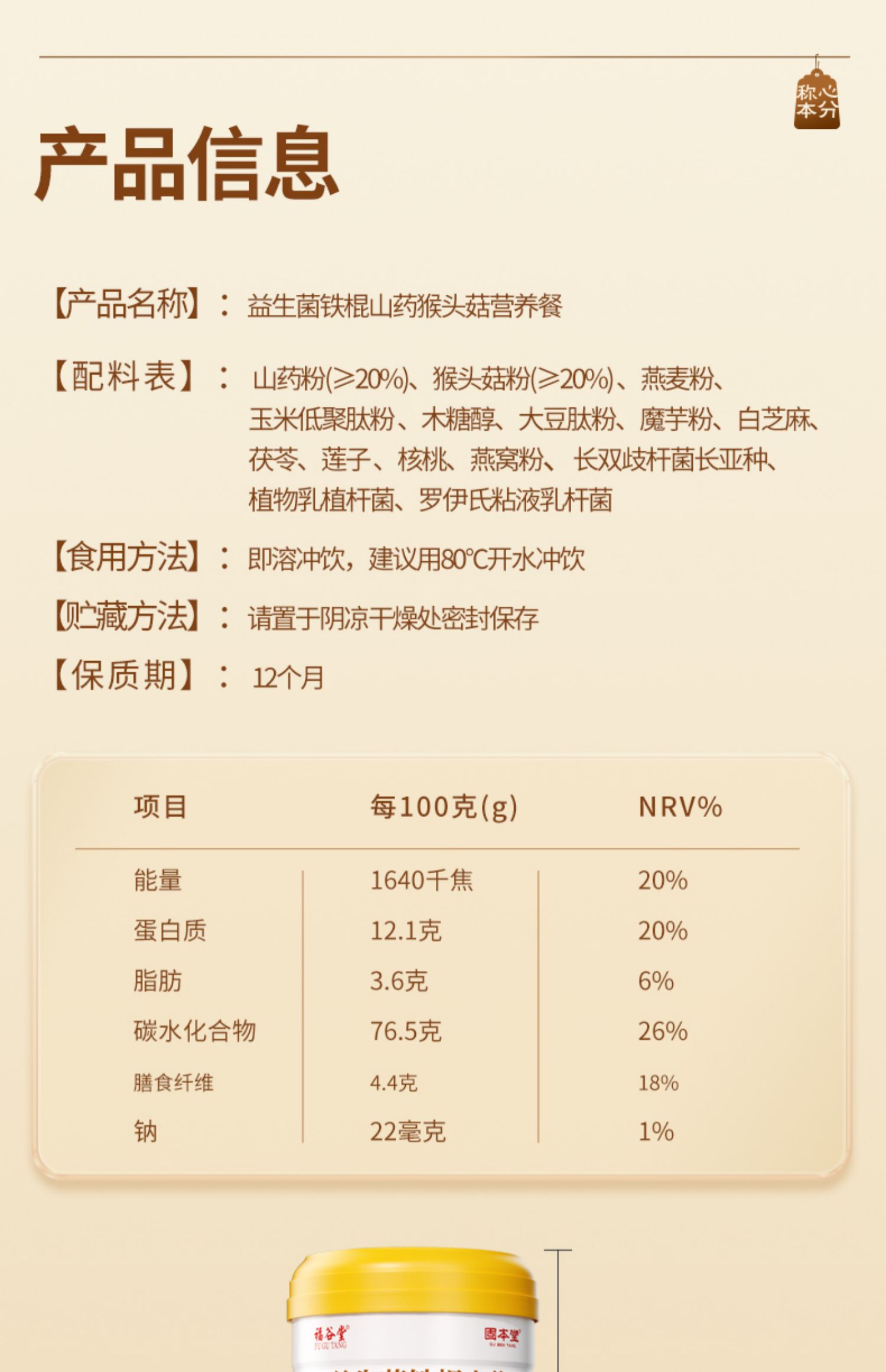 固本堂猴頭菇養胃粉山藥代餐粉營養早餐沖飲飽腹養胃食品即食沖泡