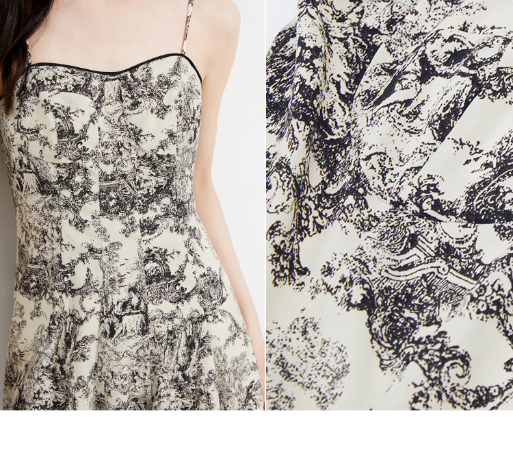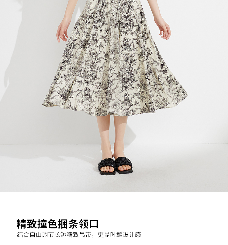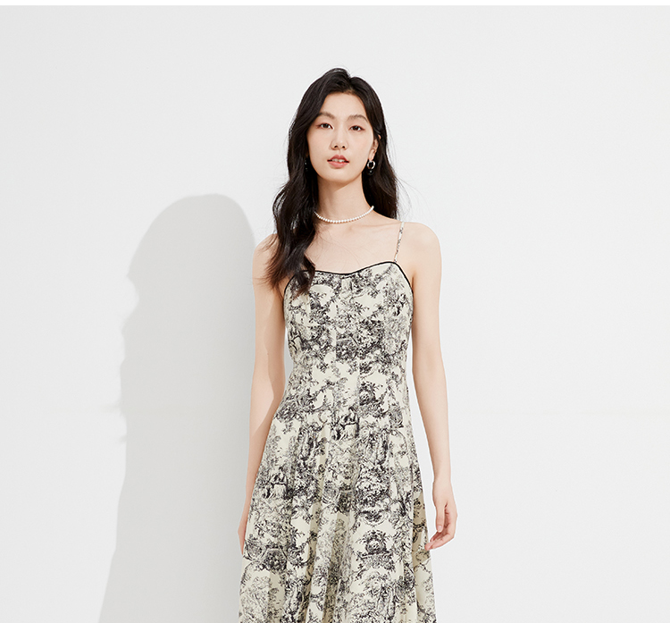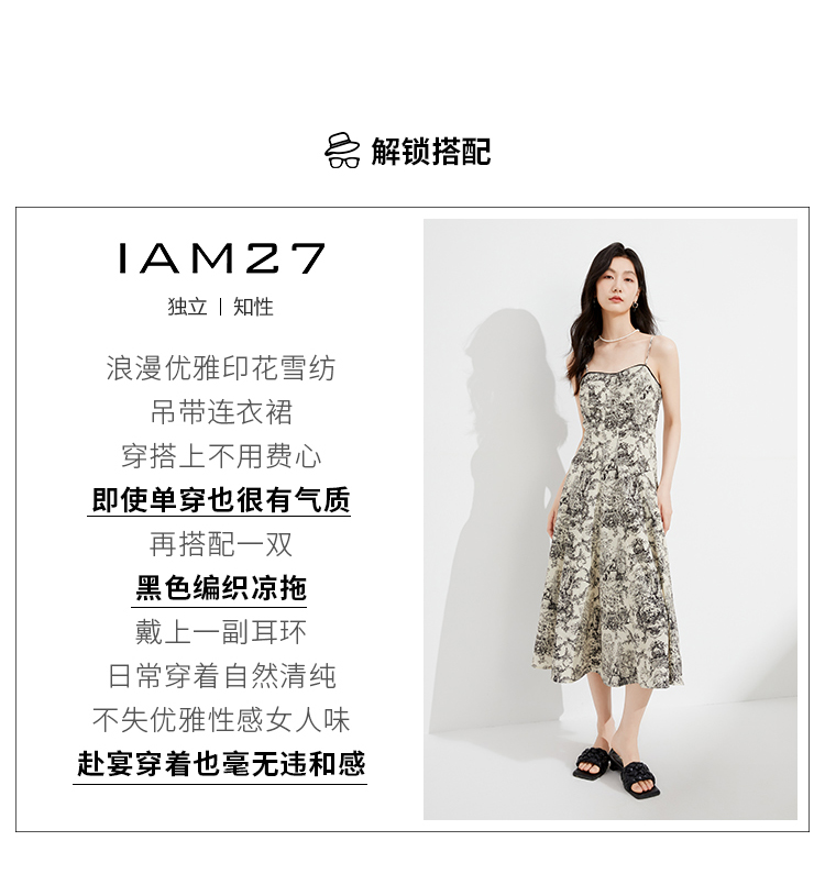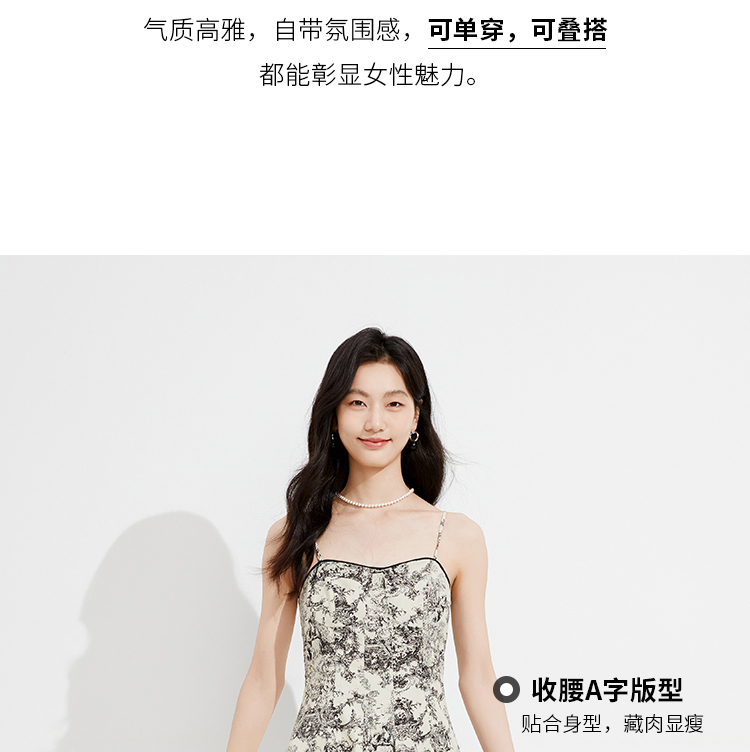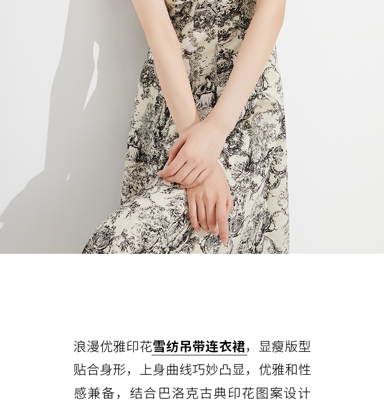 IAmMIX27夏季性感吊帶裙女高腰顯瘦法式復古氣質印花無袖連衣裙女