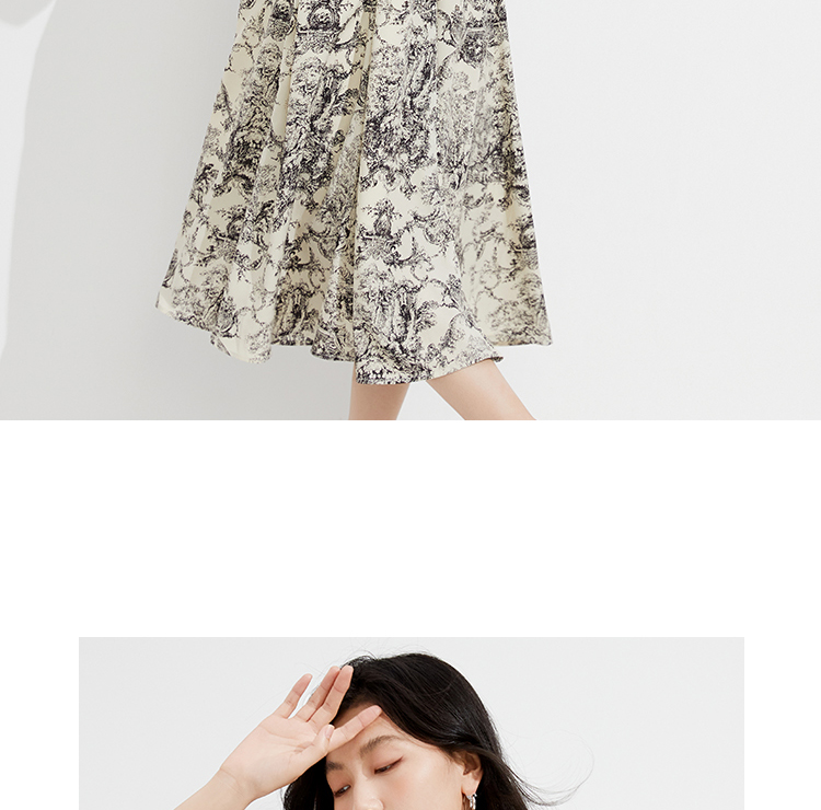 IAmMIX27法式V領連衣裙女氣質收腰顯瘦復古系繩鏤空印花桔梗裙女
