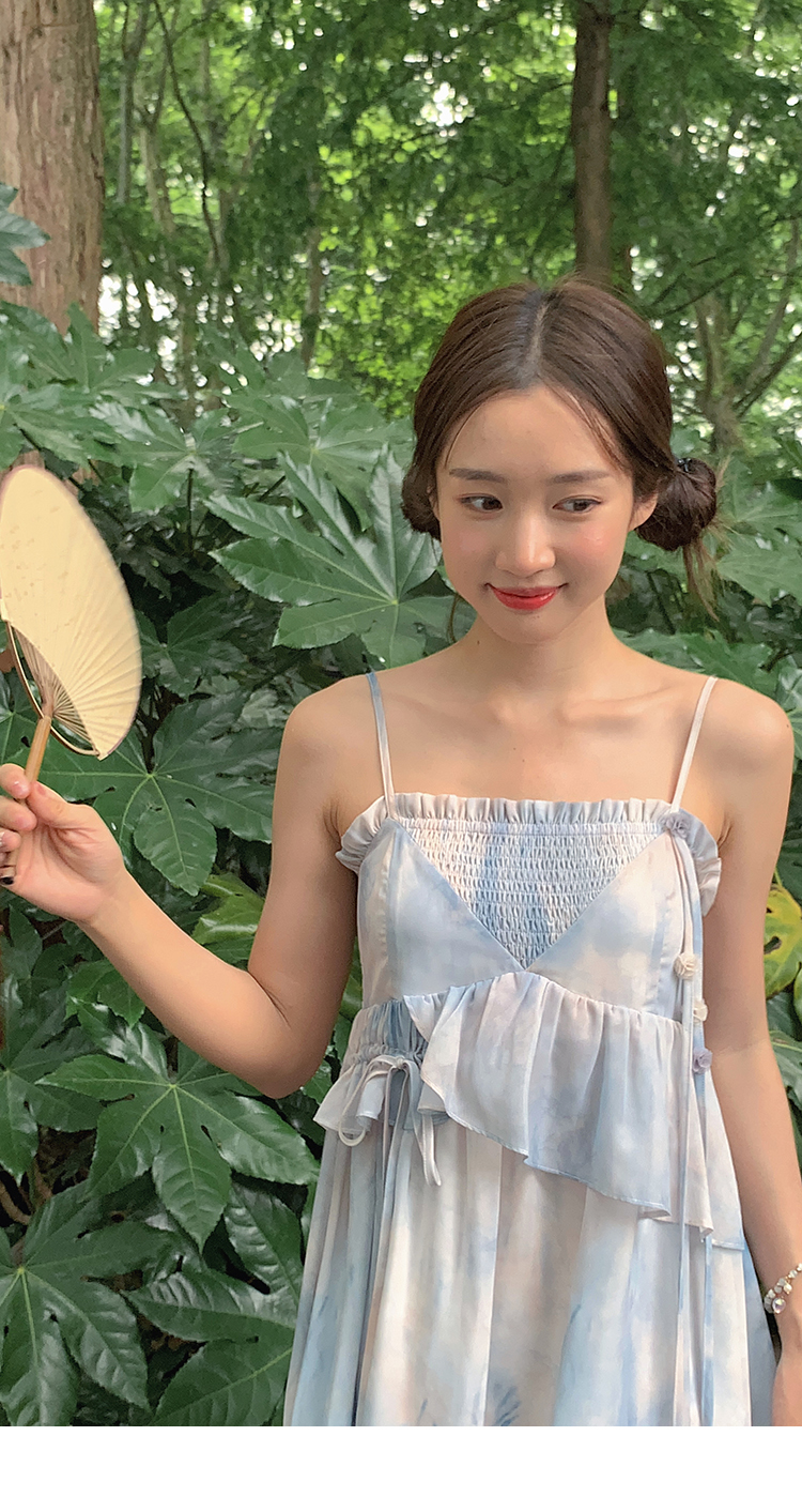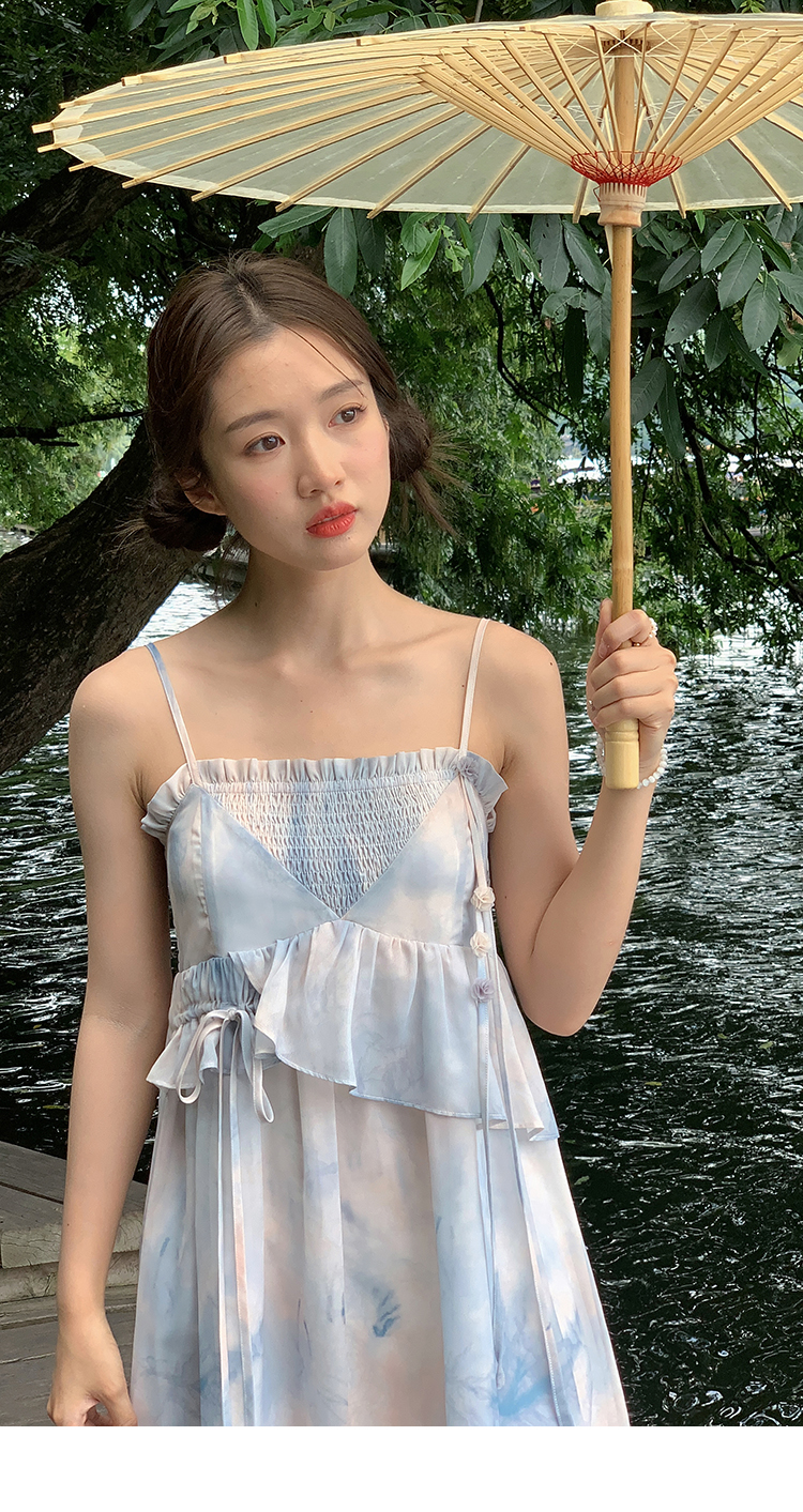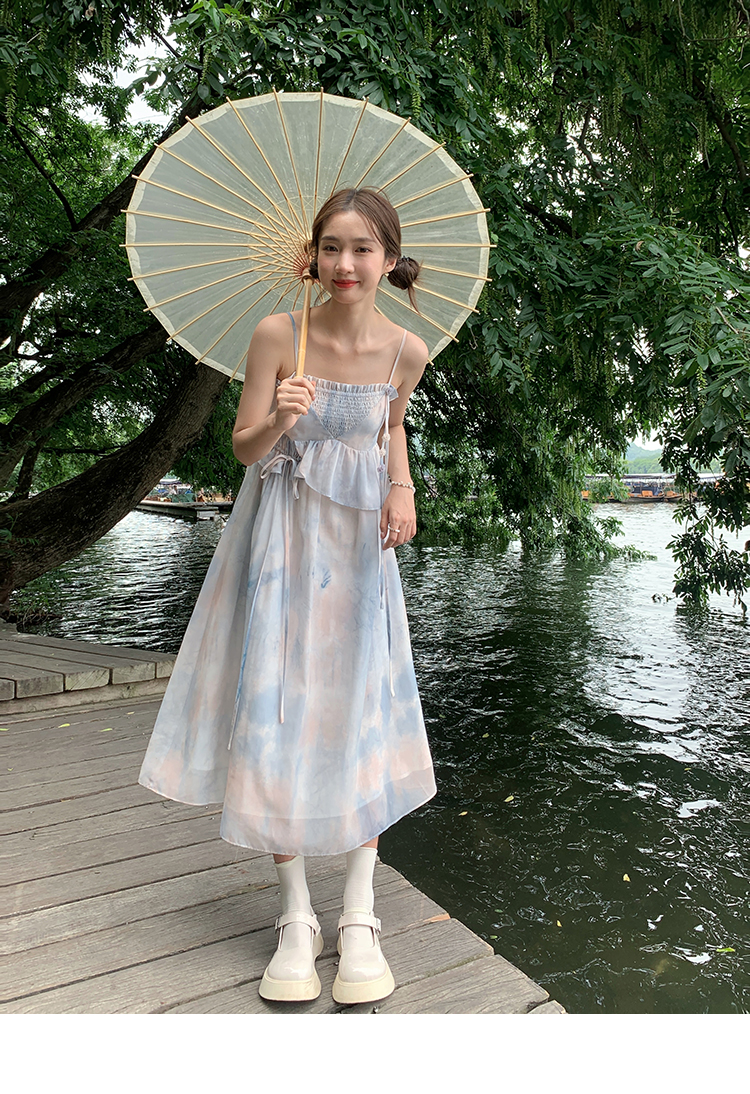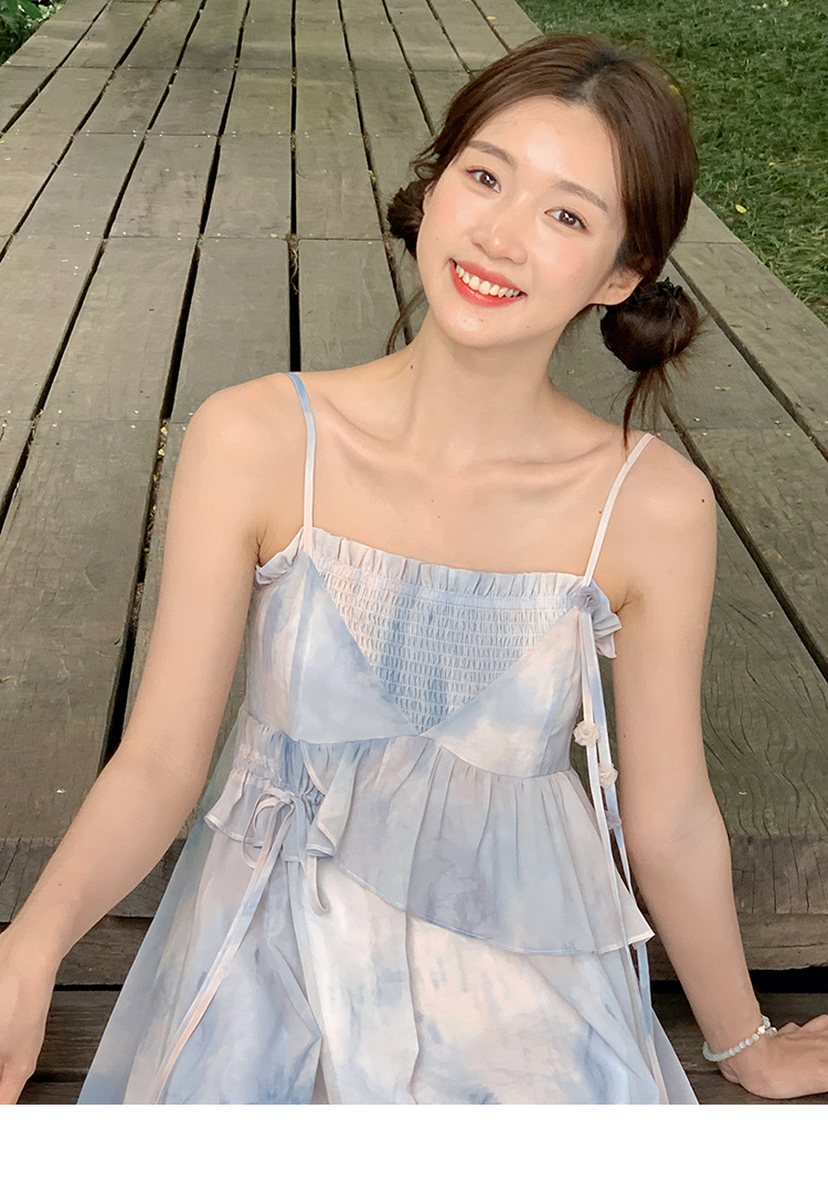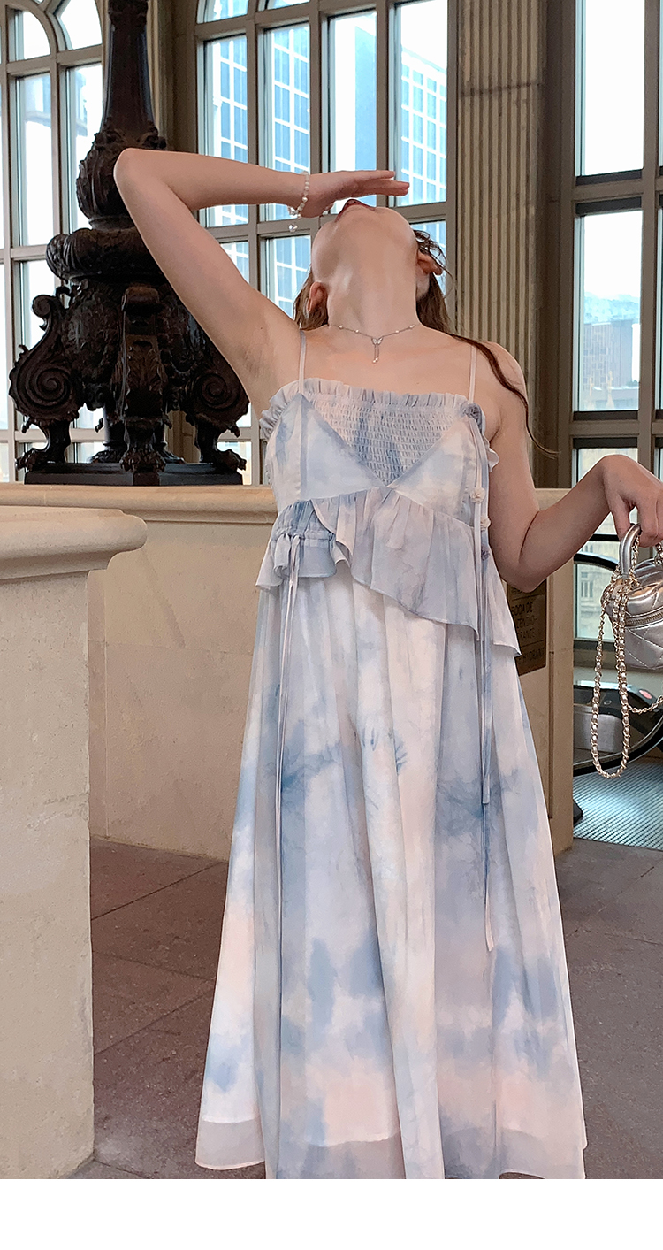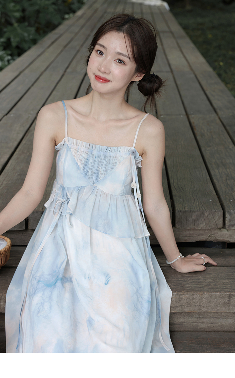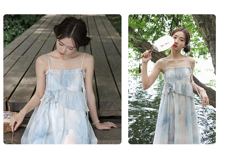 芝士日 裙子女夏季2023新款暈染吊帶連衣裙甜美高級感清純中長裙