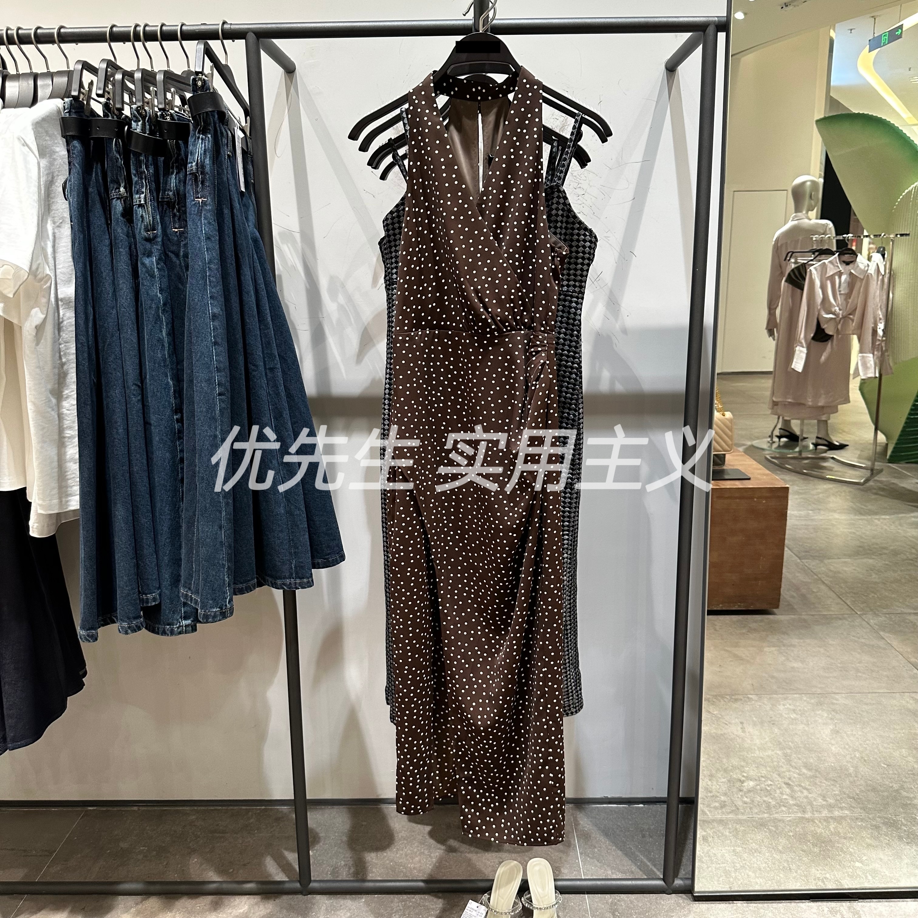 YT&UR2023夏新款女裝摩登復古感V領優雅波點無袖連衣裙UWG732186