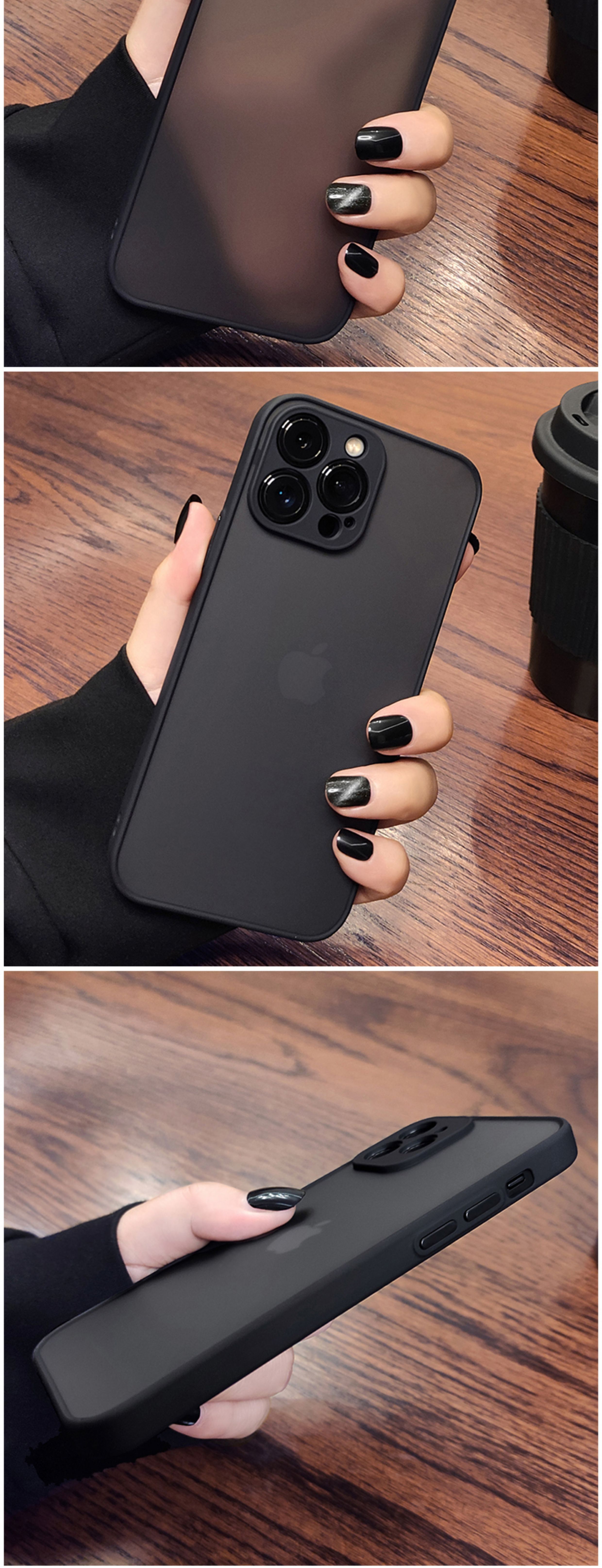 適用蘋果15pro膚感手機殼iPhone13半透明磨砂黑14promax精孔全包12max氣囊防摔保護套14簡約男女款防塵不發黃