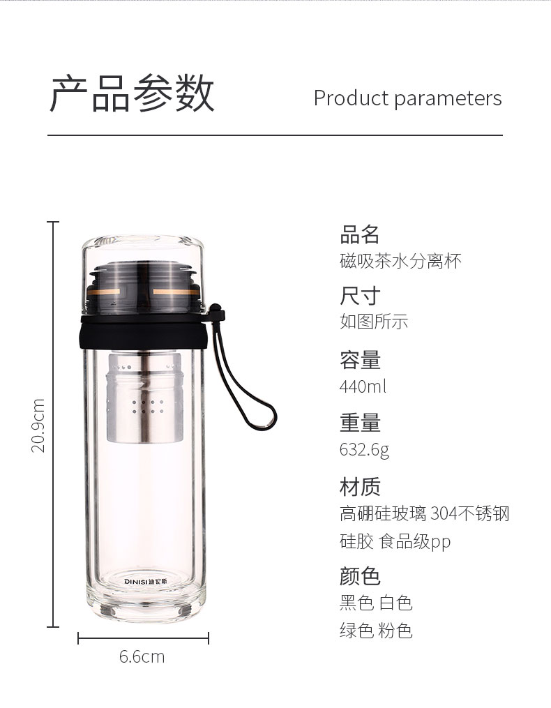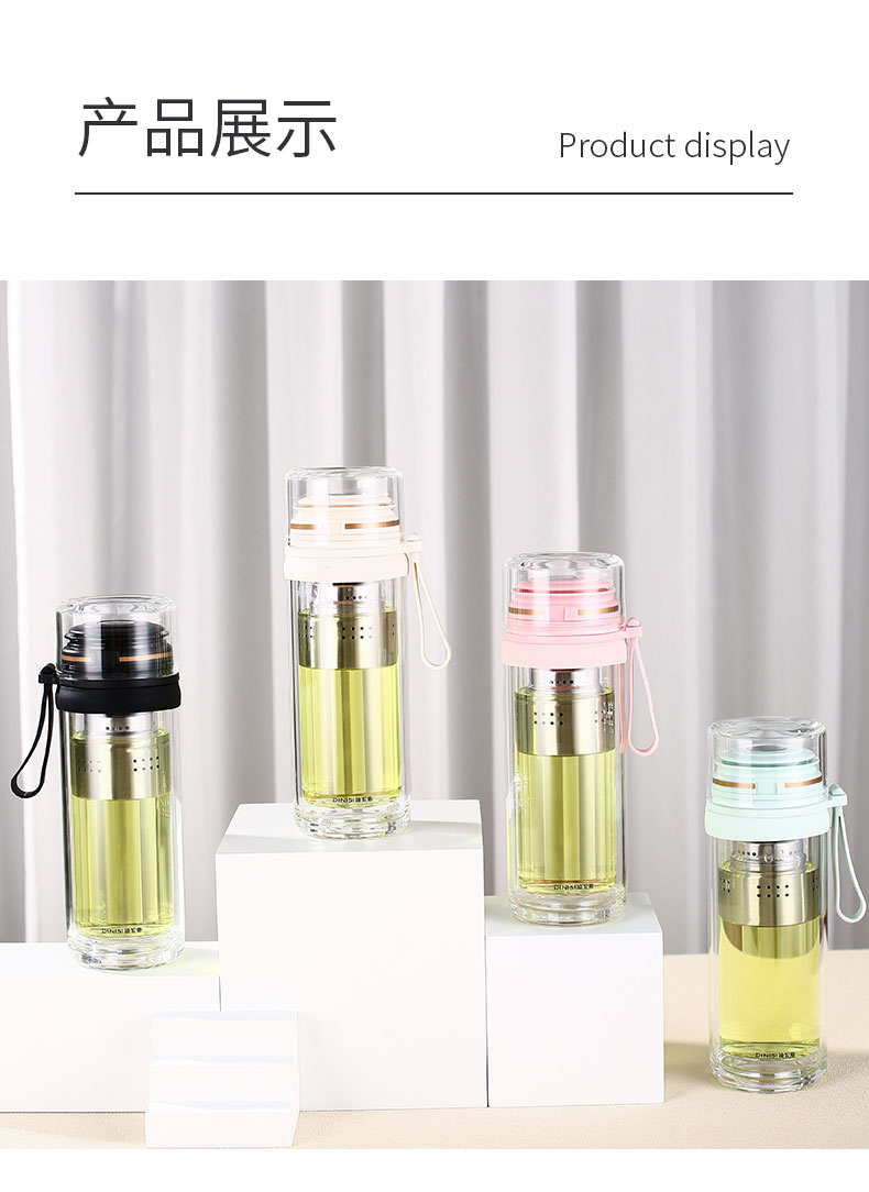 茶水分離雙層加厚耐熱便攜玻璃杯