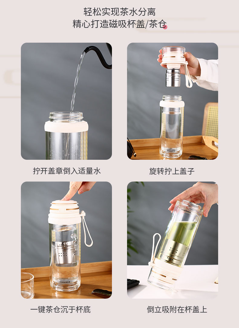 磁彈泡茶杯茶水分離杯玻璃杯女生禮物水杯女新款2023磁吸磁彈茶杯