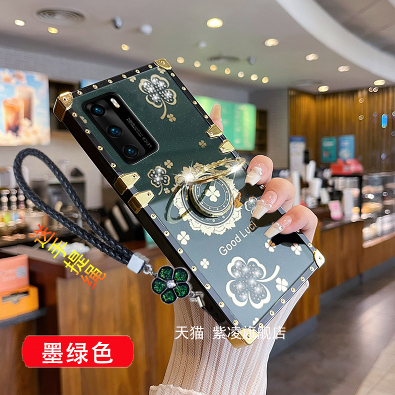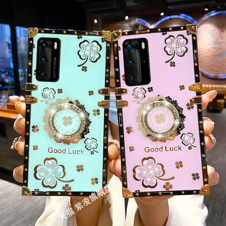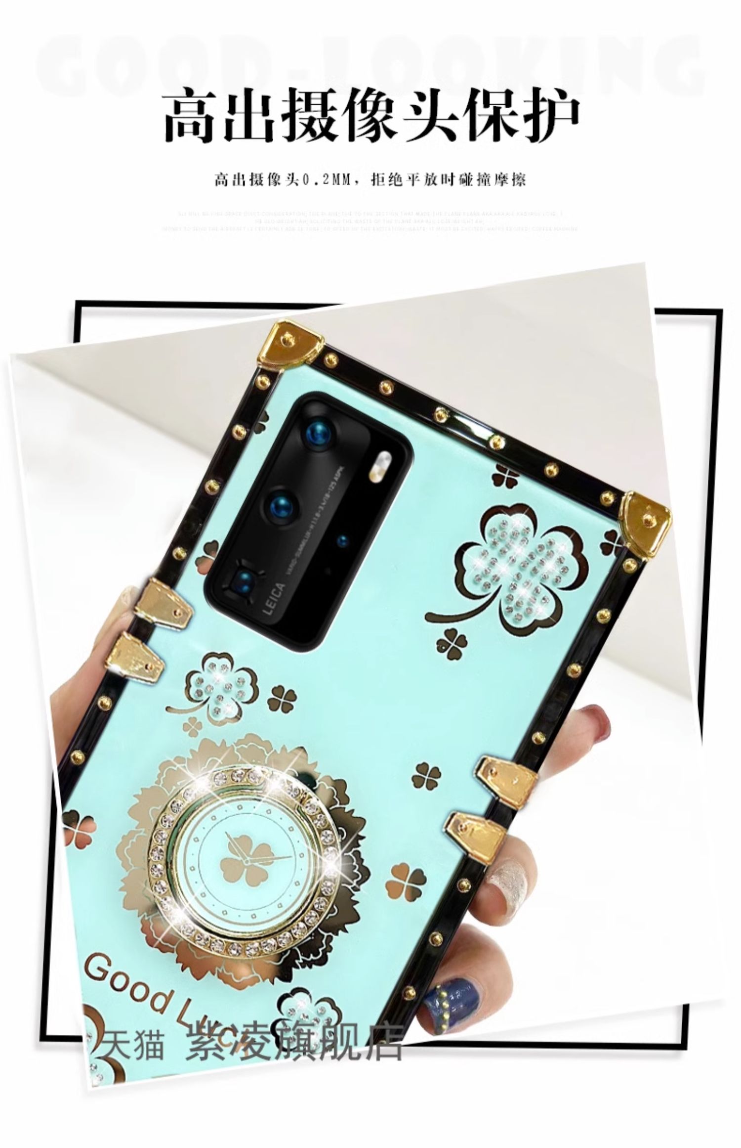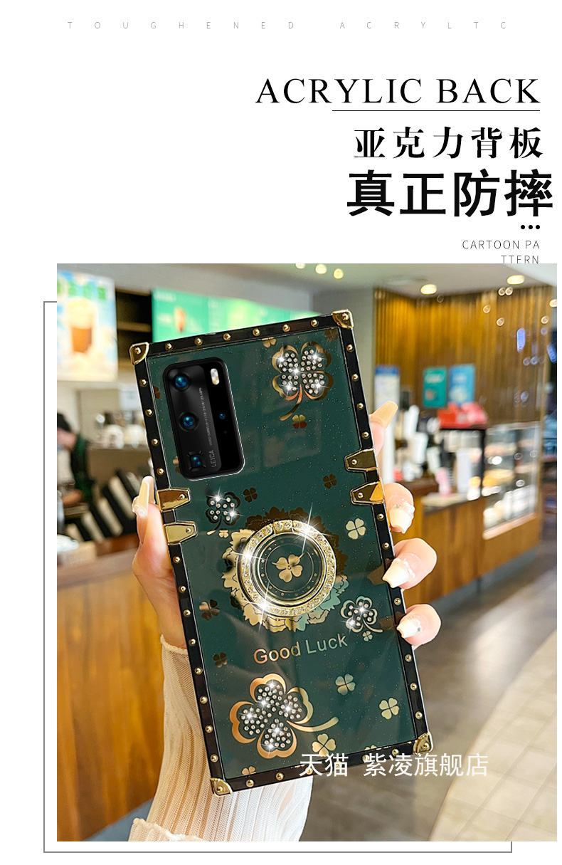 鑲鉆適用華為P40pro手機殼新款P40帶指環支架手提繩P40pro十女款硅膠pro+全包邊氣囊防摔軟殼保護套時尚水鉆