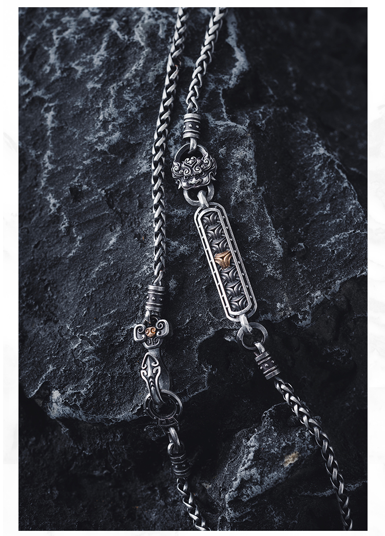 琢匠將軍令甲胄純銀項鏈男士輕奢小眾復古配件頸鏈國風男款配飾