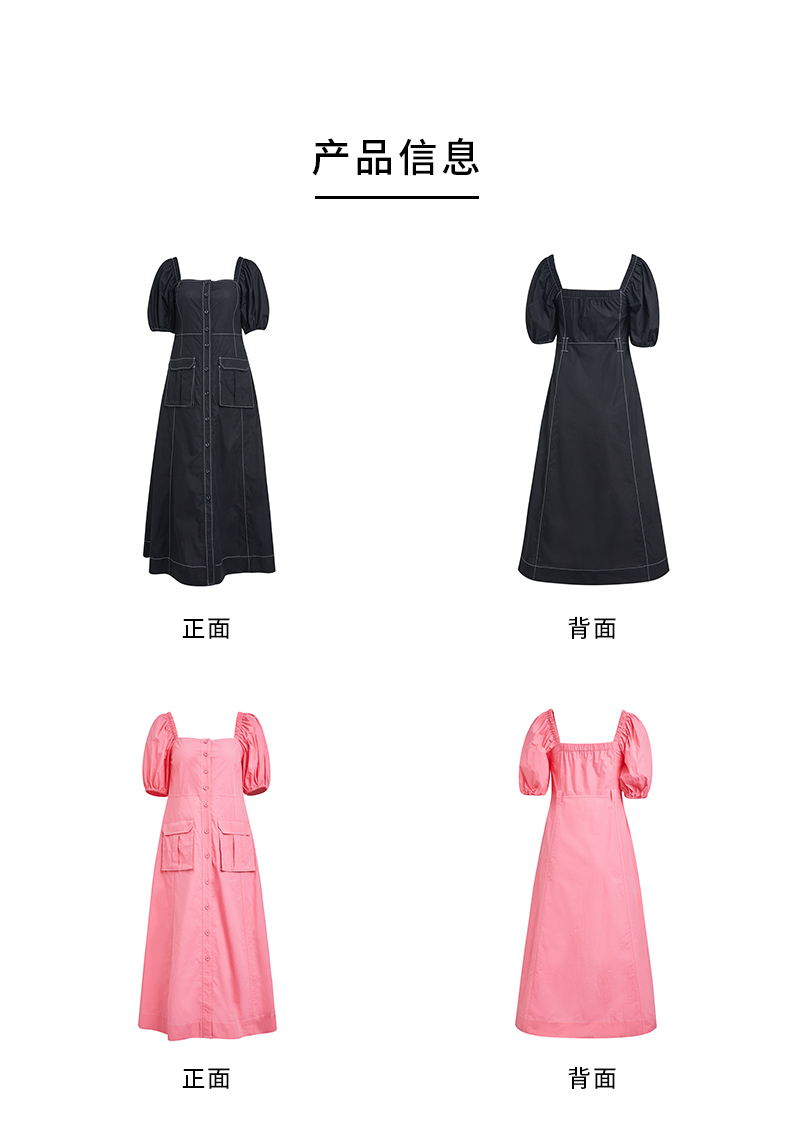 SJYP韓國潮牌中長款連衣裙夏季新款法式復古泡泡袖收腰顯瘦A字裙