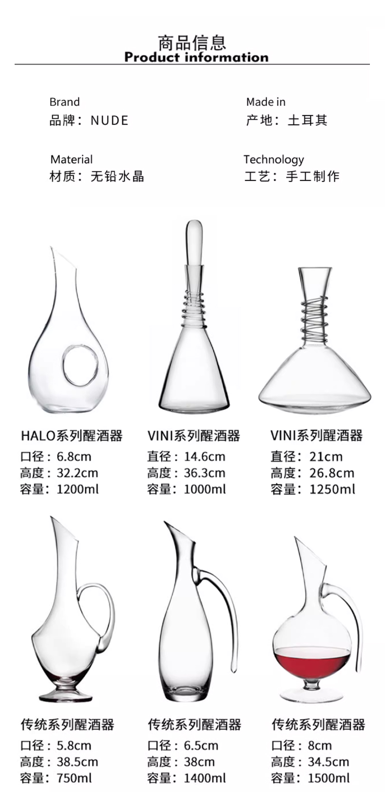 土耳其nude努德進口水晶玻璃醒酒器帶把家用分酒器紅酒快速醒酒器