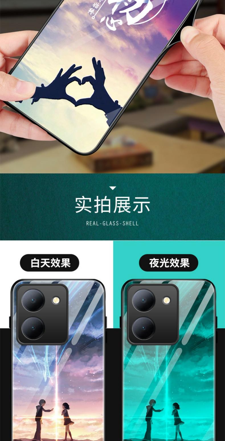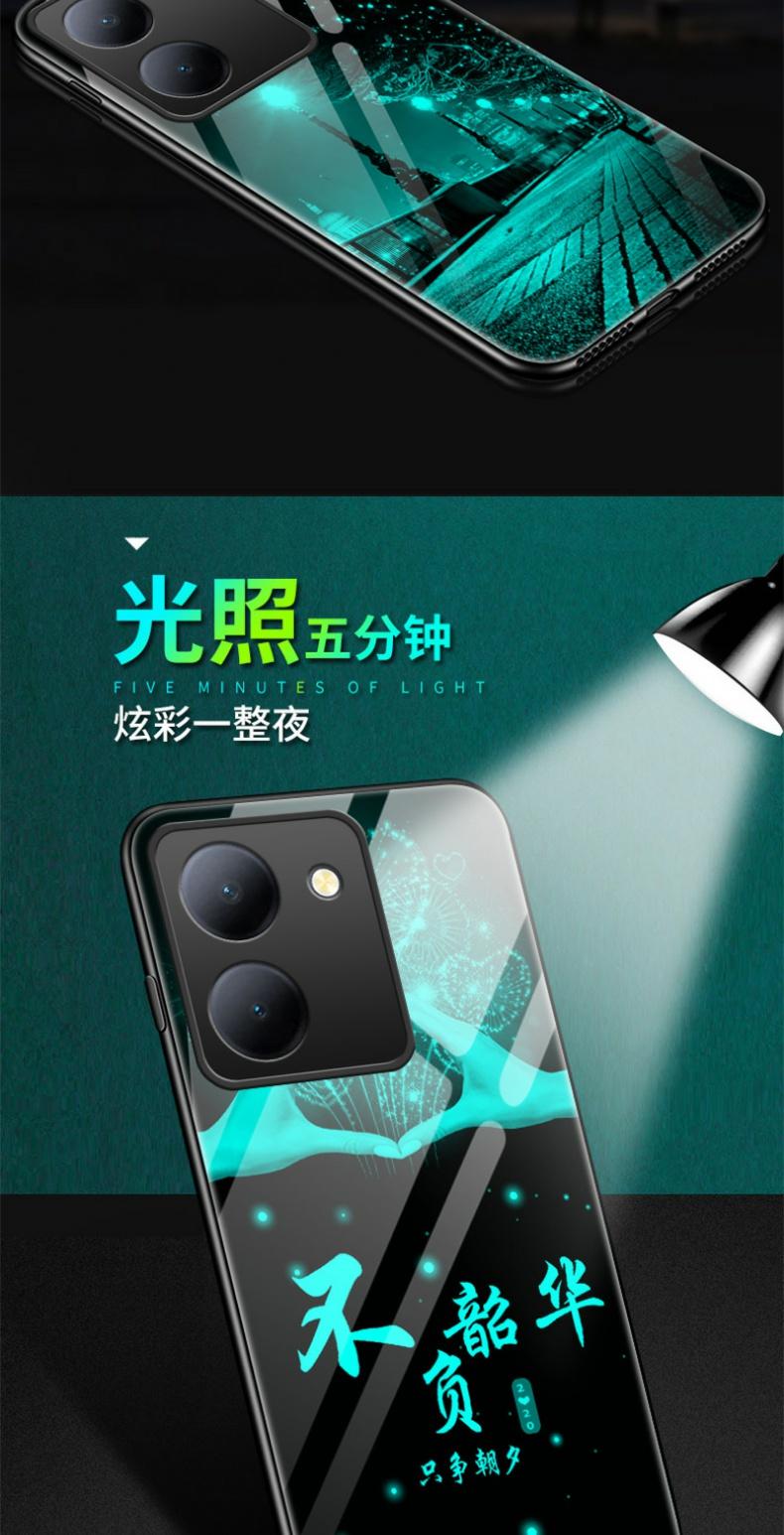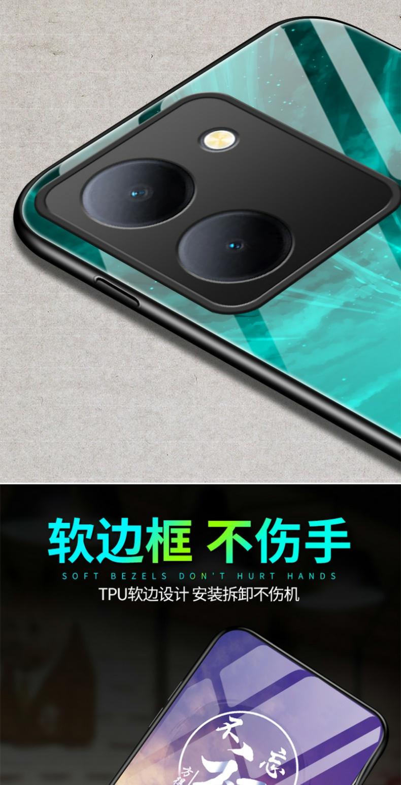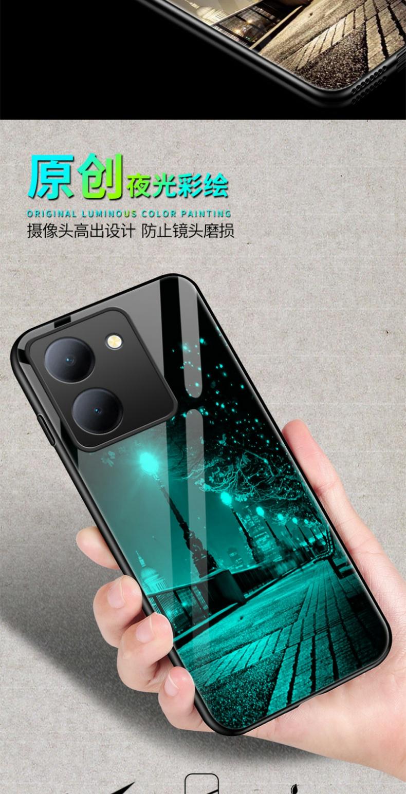 夜光玻璃vivoY78手機殼V2278A硅膠軟邊硬殼5G全包鏡頭防摔Y78男女保護套vlvo網紅丫78流行創意Vivi個性鏡面新