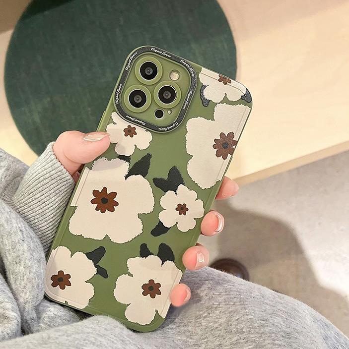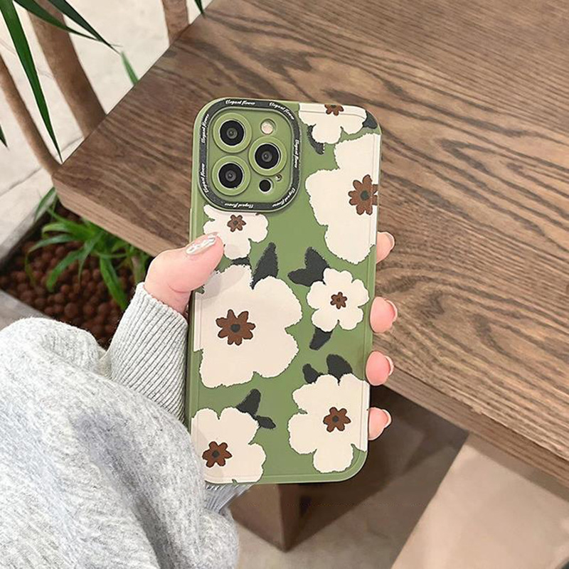 復古綠色白雛菊XR適用iphone11蘋果12手機殼13promax軟套XS春天14