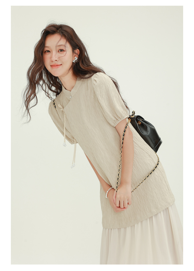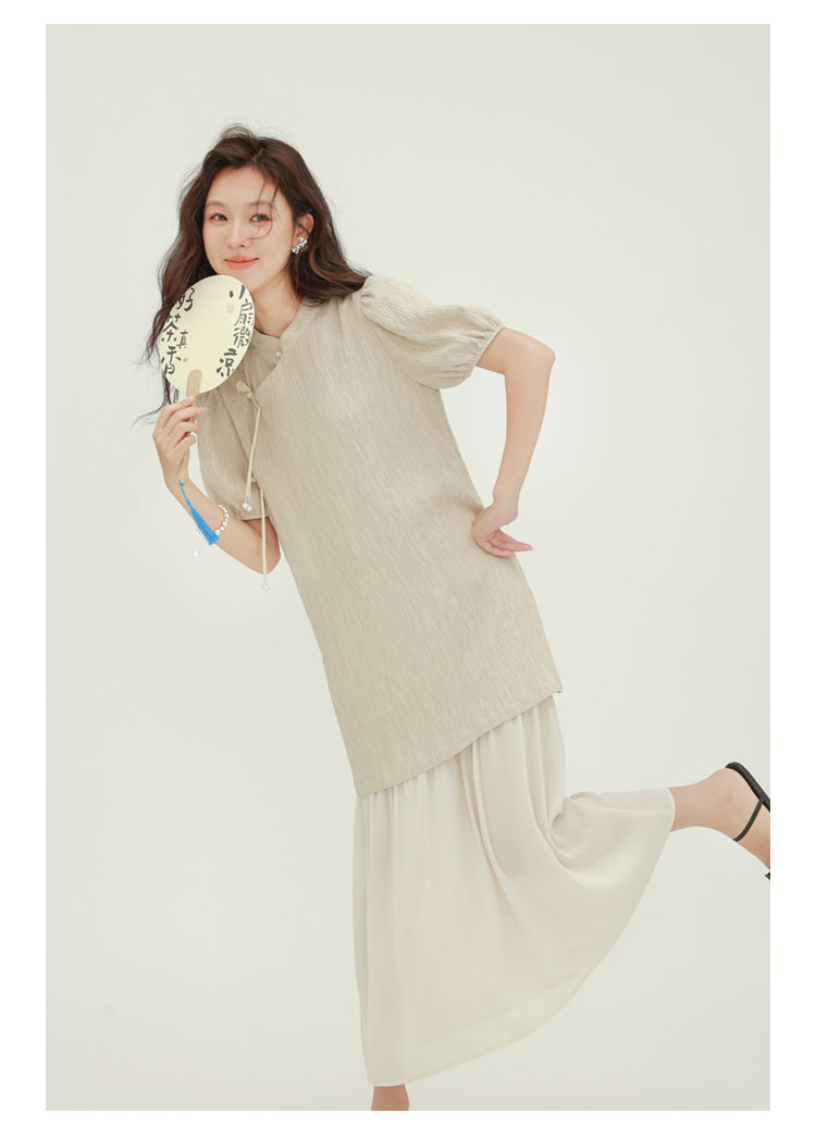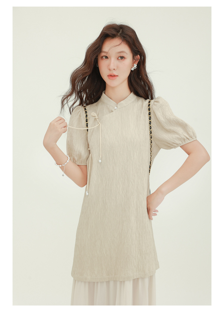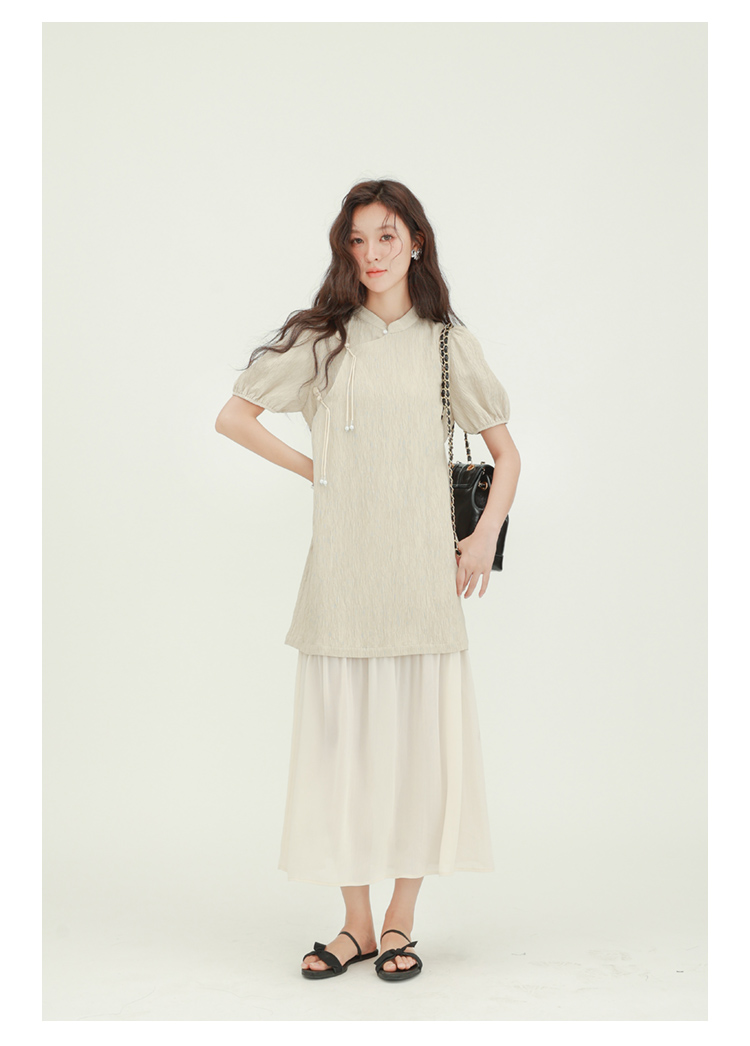 中式連衣裙女小眾設計感AB面不規則兩穿通勤短袖立領格子旗袍裙