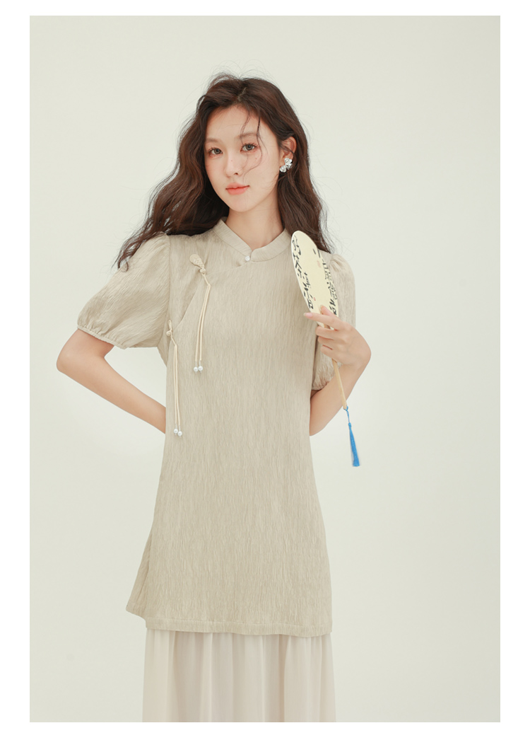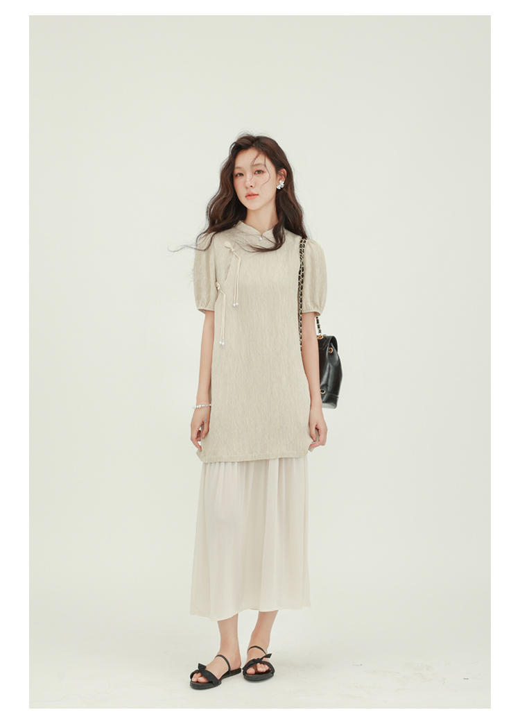 HESHEME原創新中式改良寬松立領長旗袍夏季新款國風盤扣連衣裙女