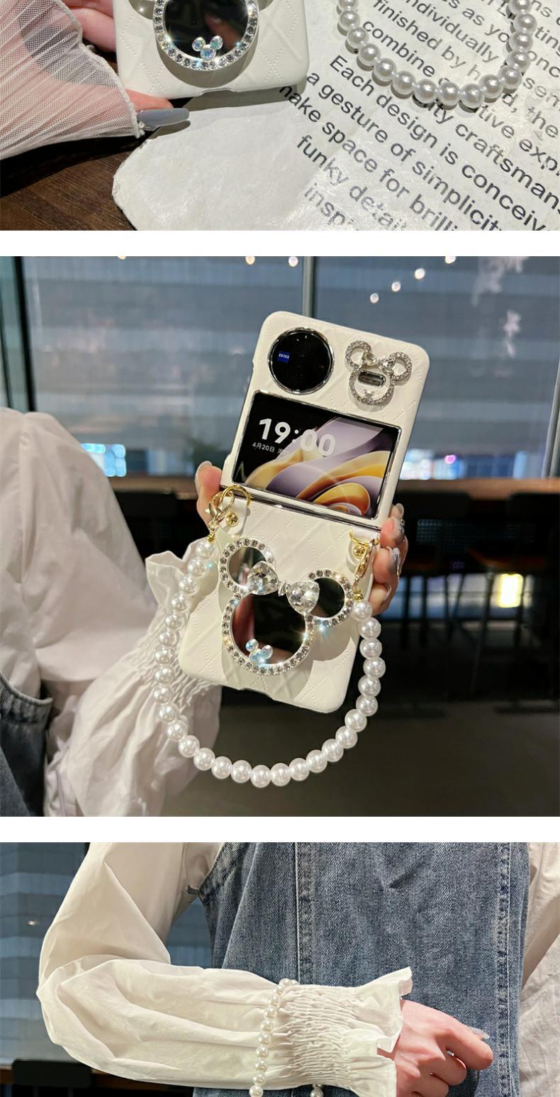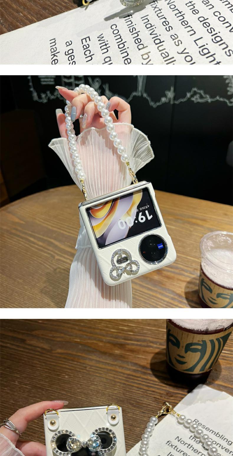 oppofindn2flip手機殼折疊屏保護套適用oppo find n2 flip翻蓋個性創意化妝鏡diy小眾奢華簡約珍珠手提新外殼
